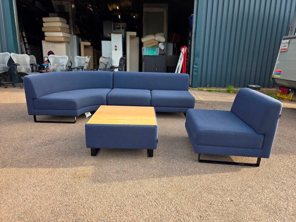 A stylish Mark sofa set in blue fabric, ideal for reception areas, breakout spaces, lounges, waiting areas, and modern office interiors.