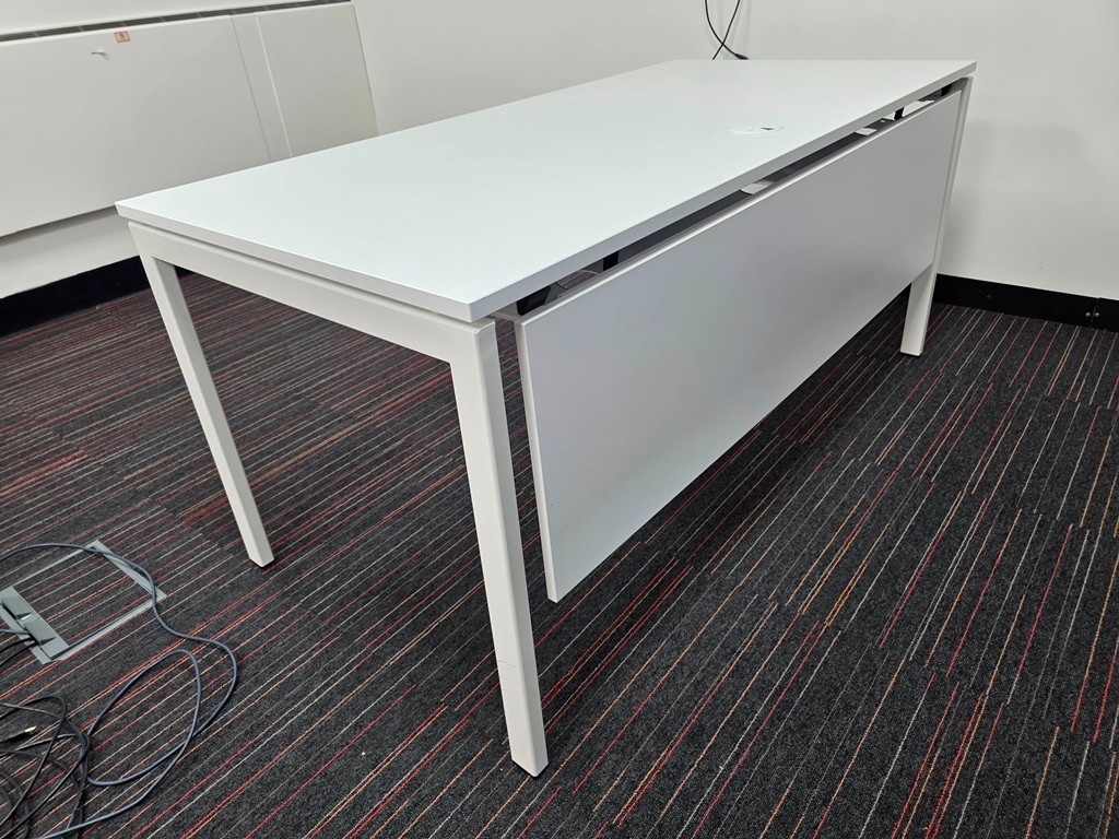 White Office Desk with Cable Grommet, Under Desk Tray and Modesty Panel – 160 x 80cm