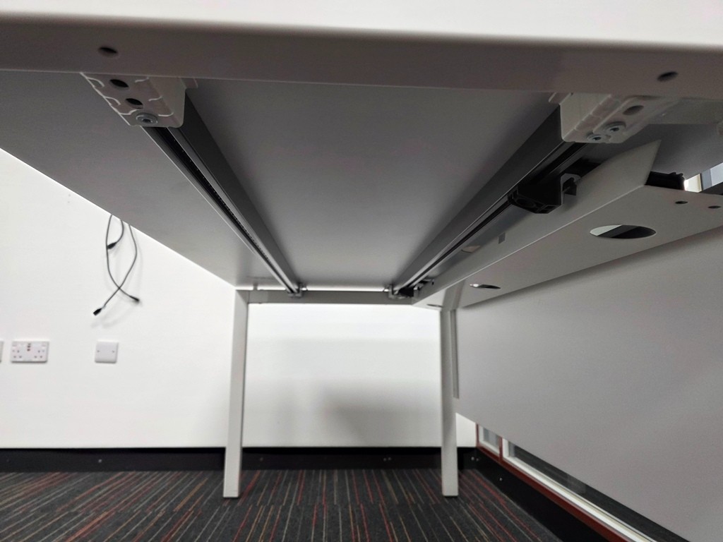 A clean, desk-height workstation with a generous 1600 x 800mm surface and integrated cable management – ideal for monitors, laptop setups and paperwork in office environments, meeting rooms and team workspaces.