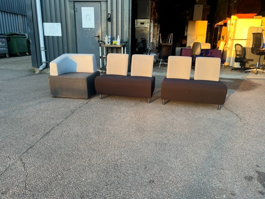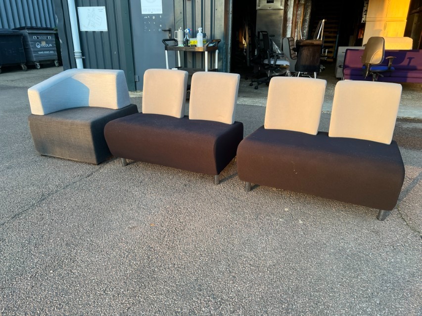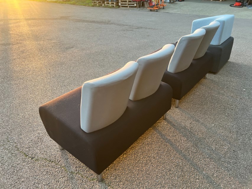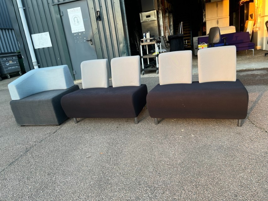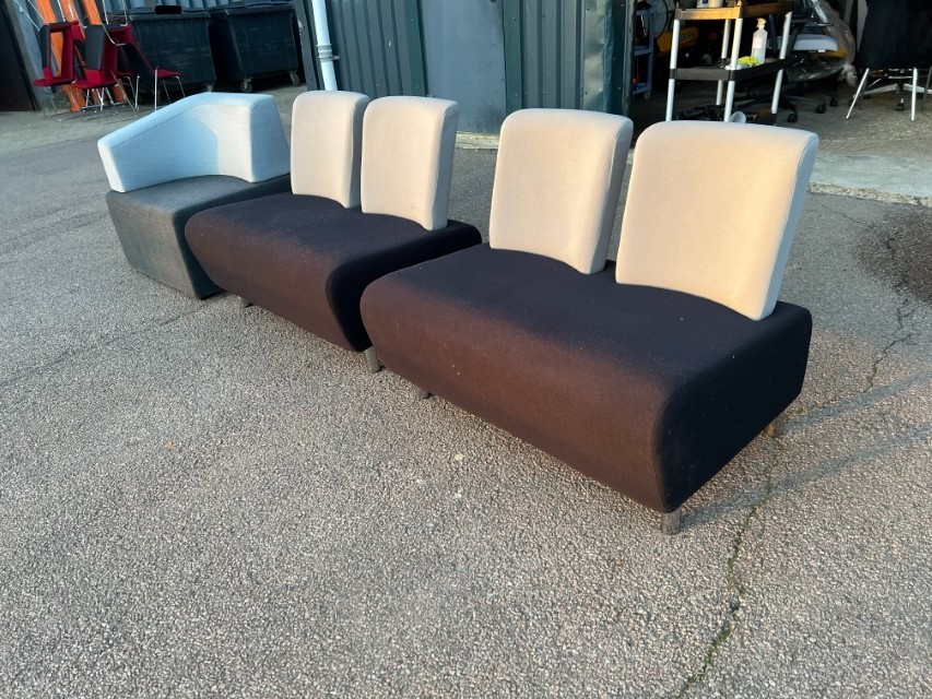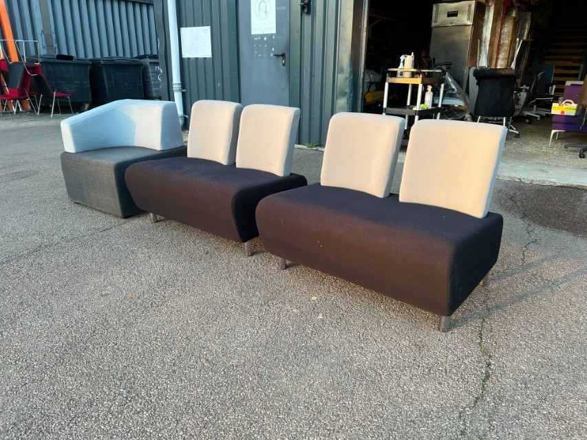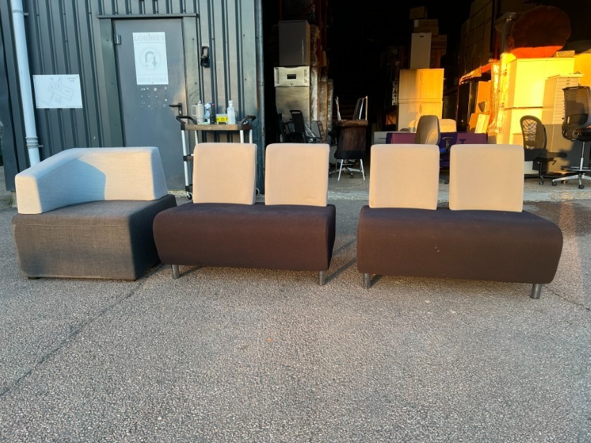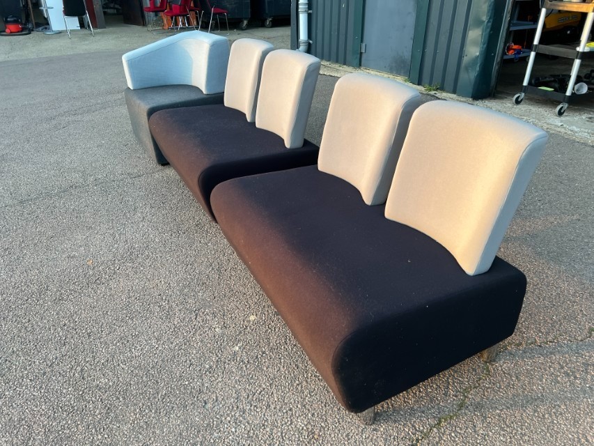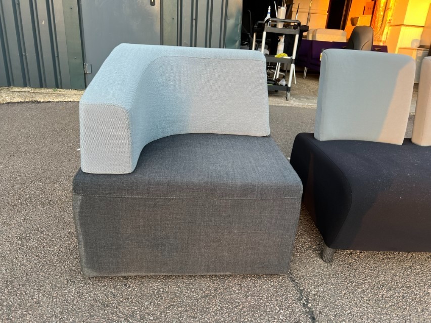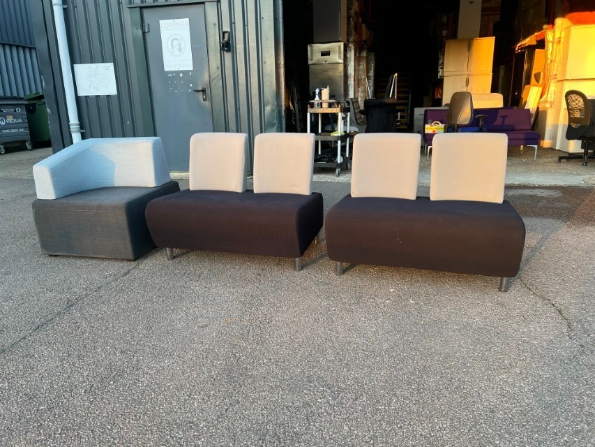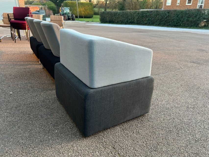 Smart modular lounge seating ideal for office reception areas, waiting rooms, breakout spaces or studio/commercial environments. Clean modern look with two-tone upholstery.