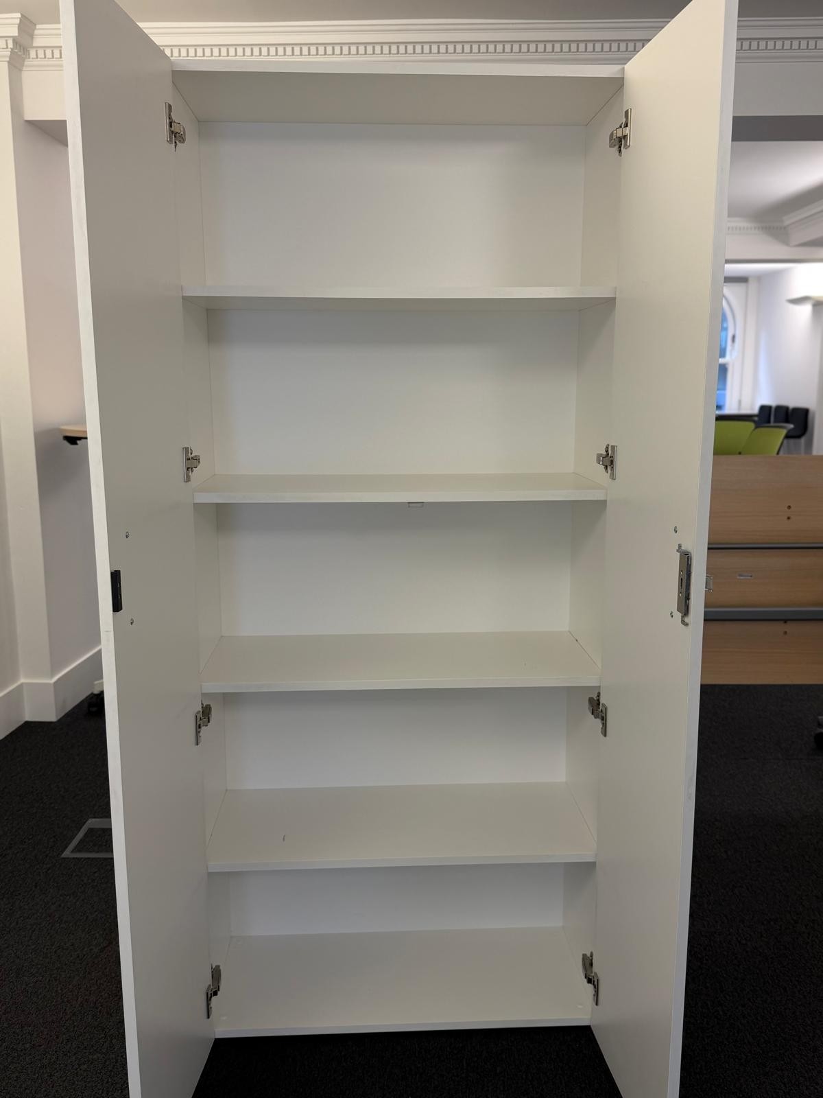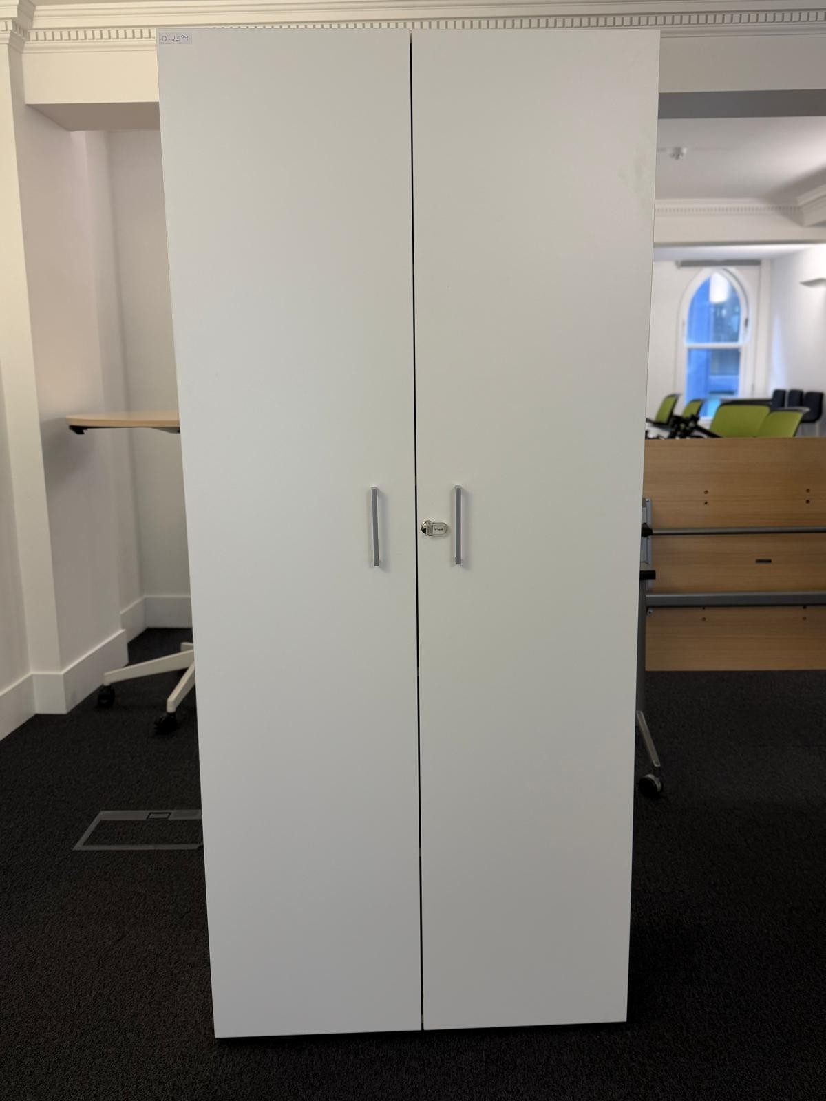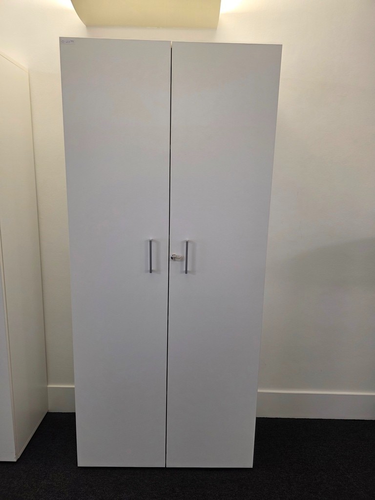 Smart, modern tall storage cupboard ideal for office files, stationery, or home organisation – clean look with secure, lockable doors.