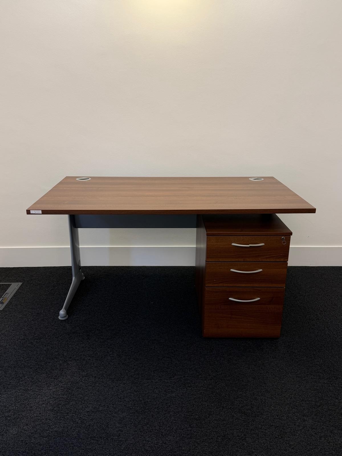 Office Desk with 3-Drawer Pedestal Cabinet (140 x 80cm) – Walnut Effect