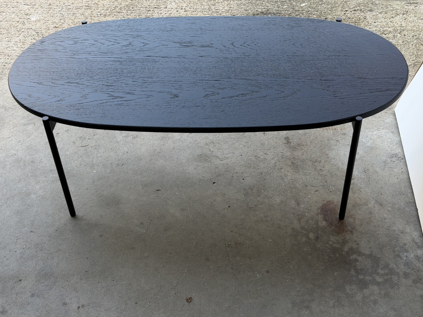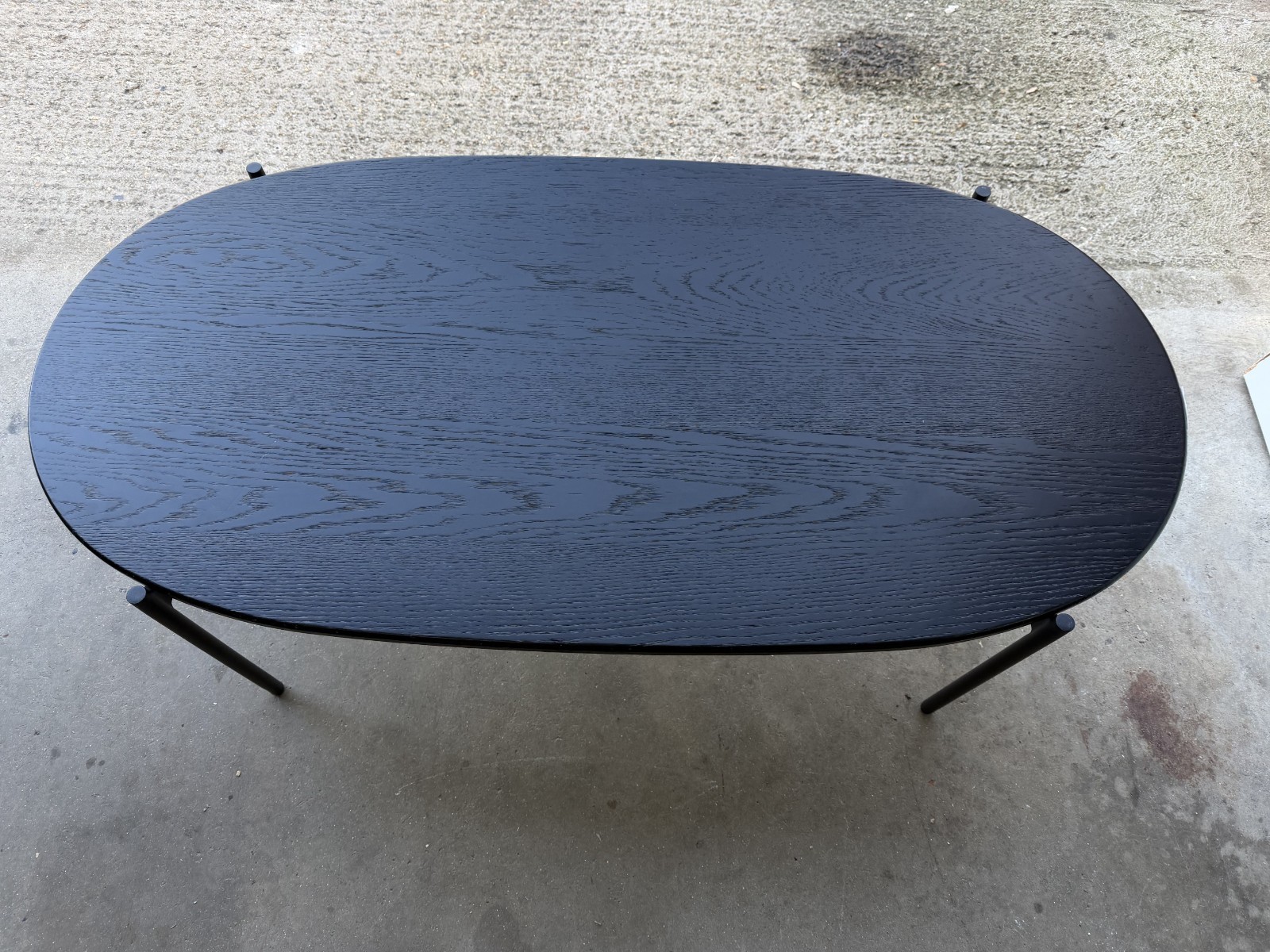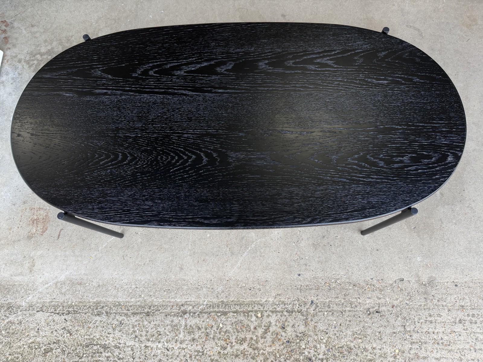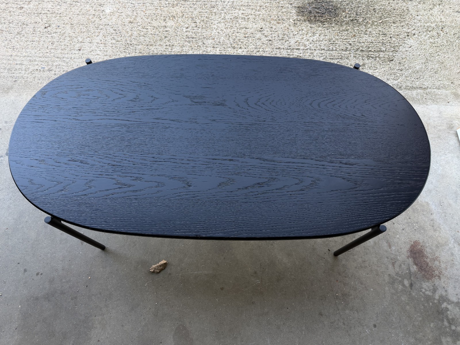• Oval tabletop with visible grain/texture finish (black)