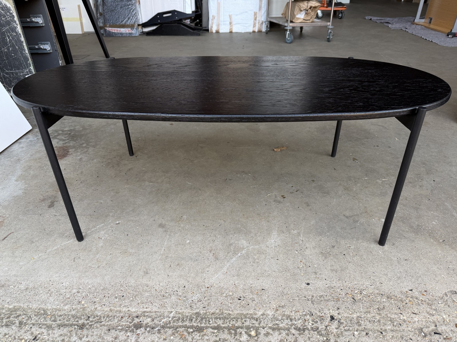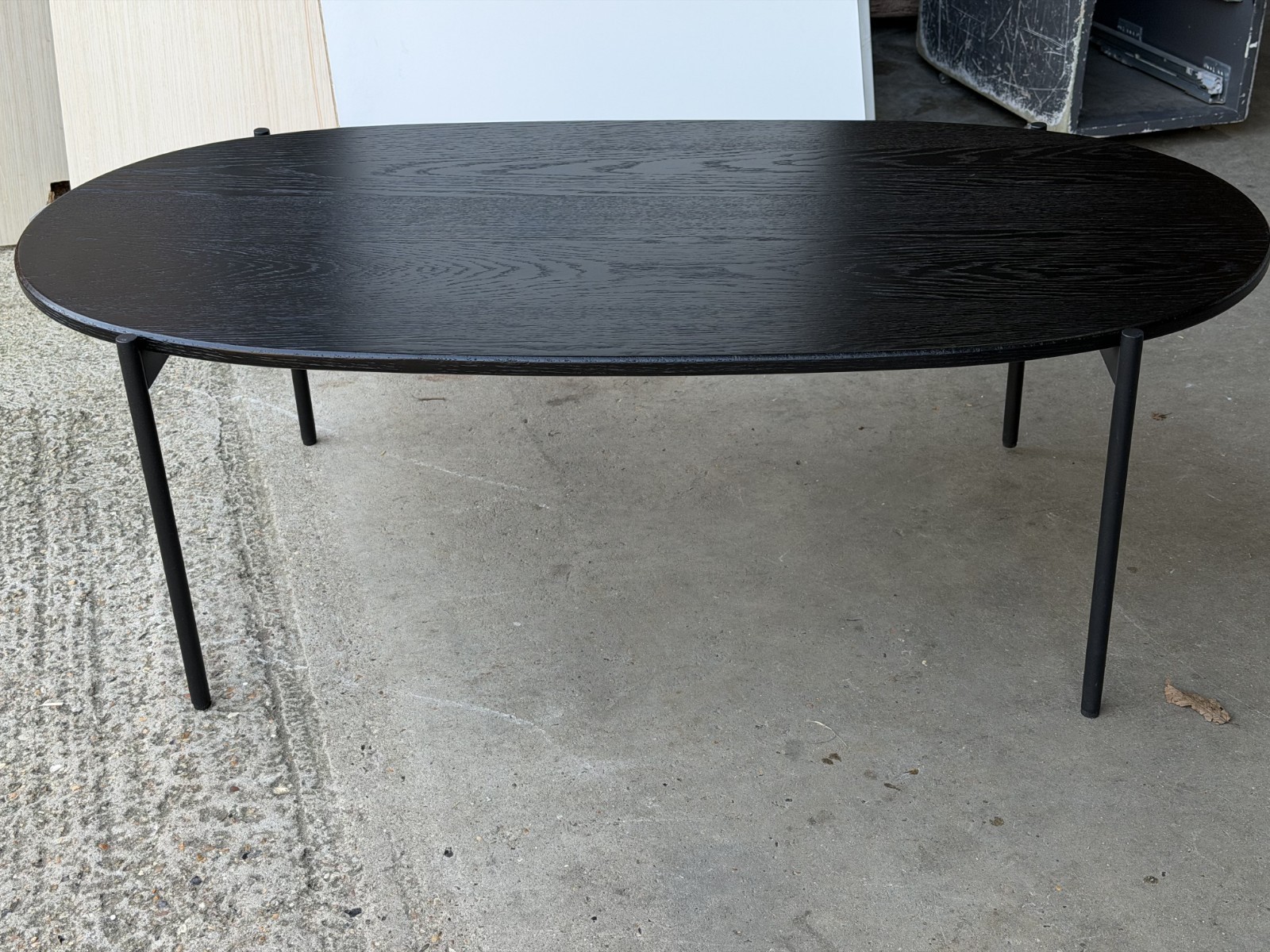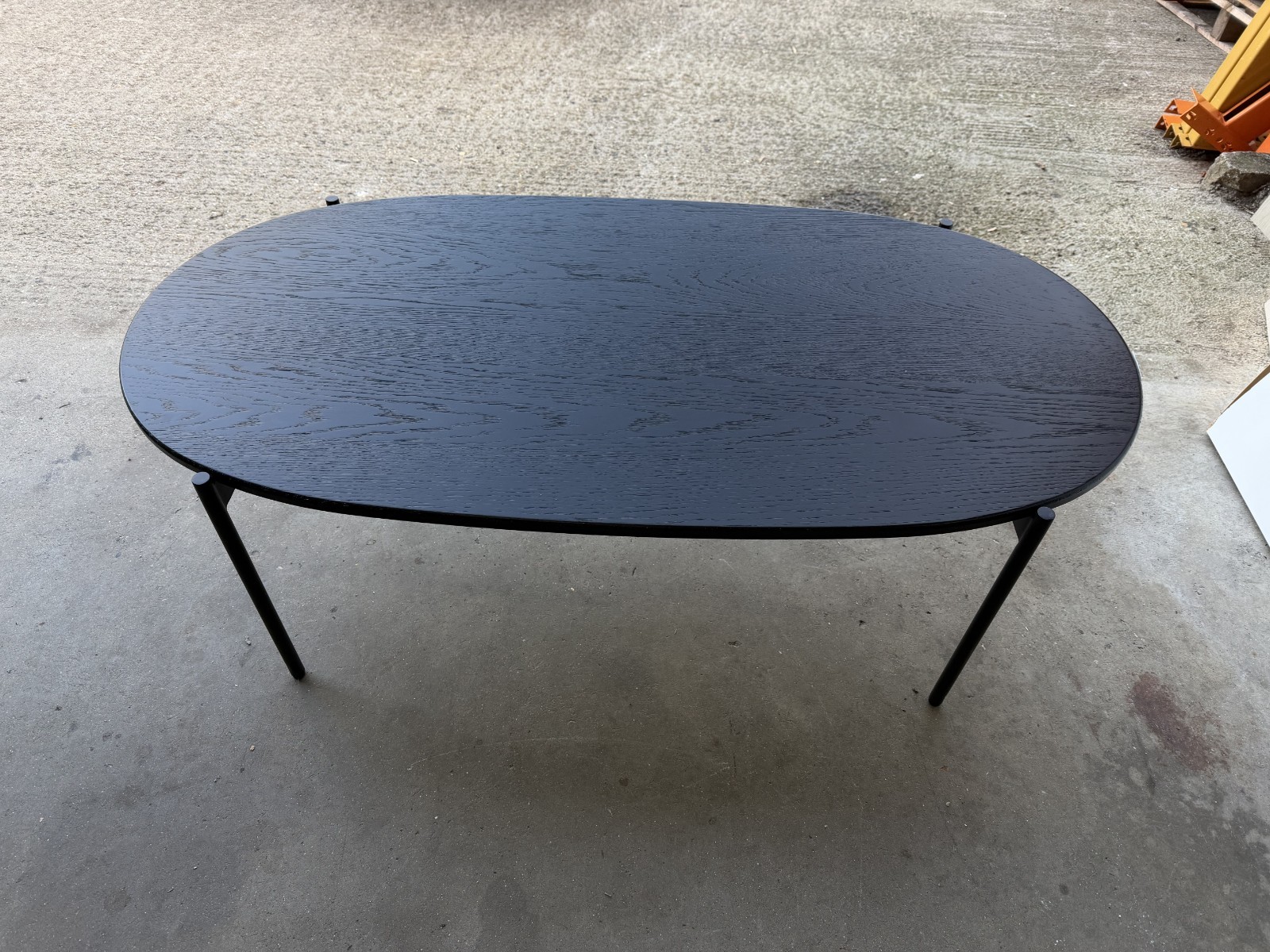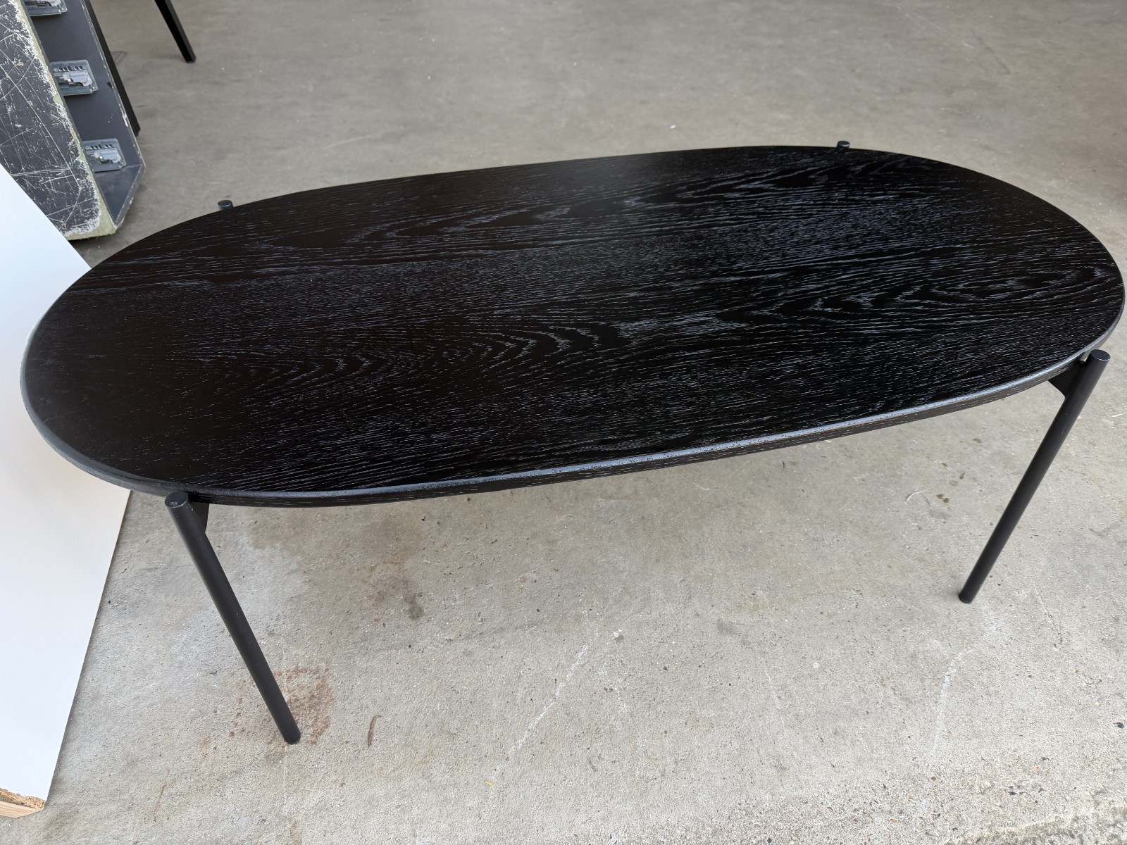 • Oval tabletop with visible grain/texture finish (black)