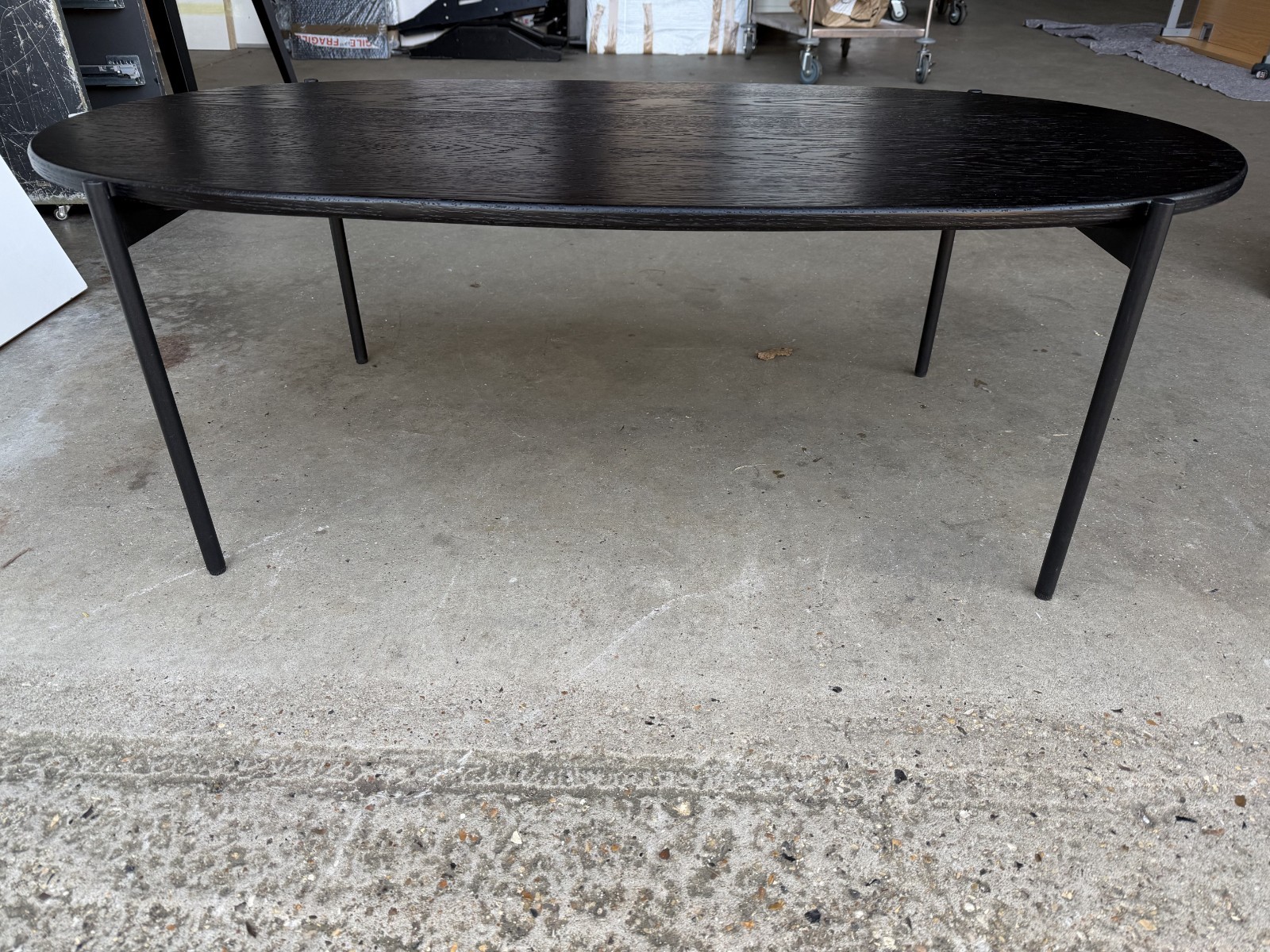 Sleek oval coffee table in a modern black finish with slim legs – a clean, minimalist look that suits most living rooms.
