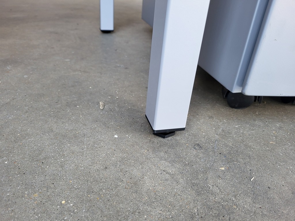 Grey steel legs with floor‑levelling feet for stability on uneven surfaces