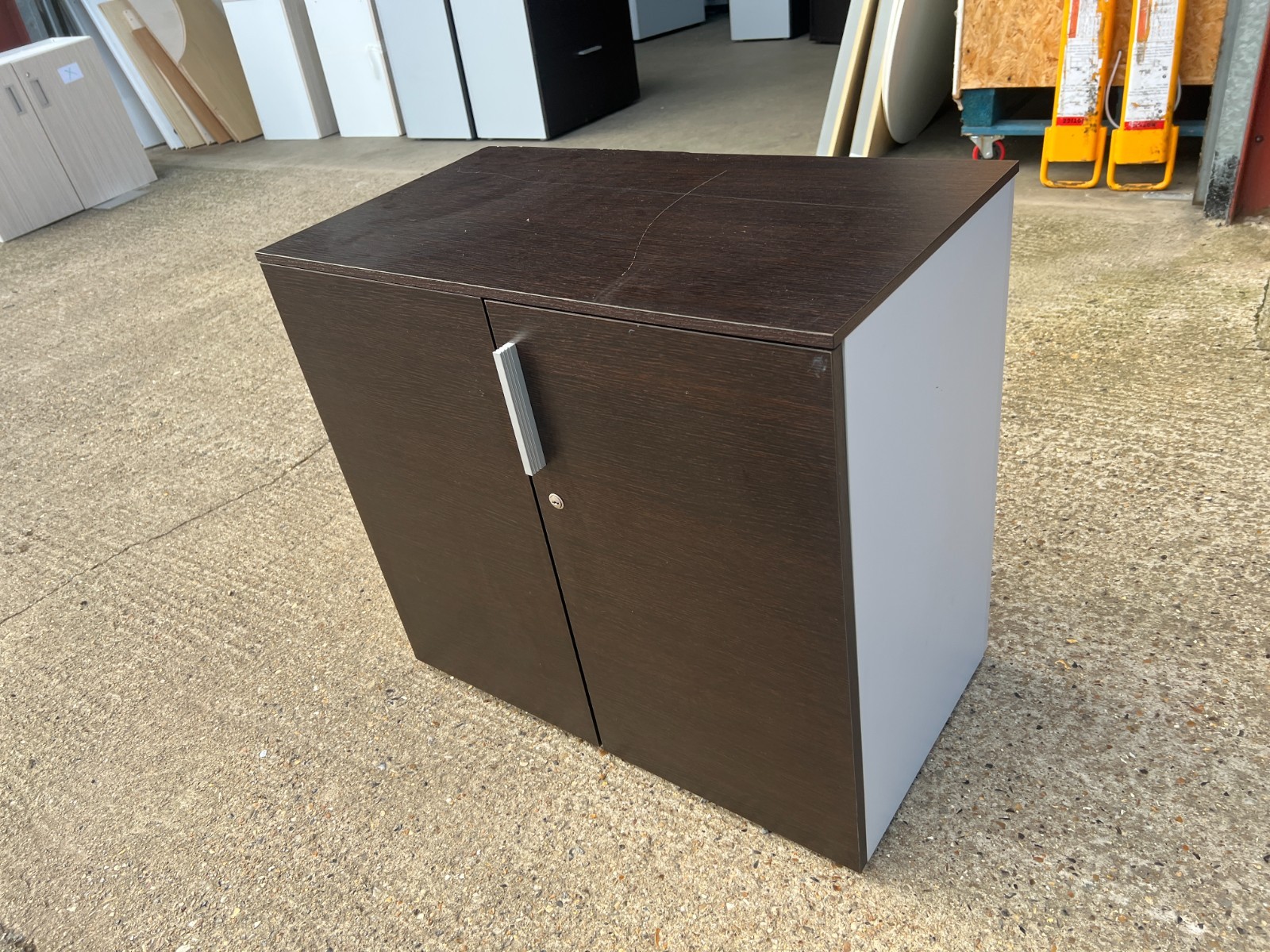 ๐งพ Lockable Office Storage Cupboard (Dark Wood / White Sides)