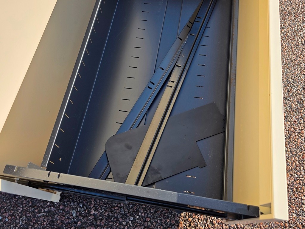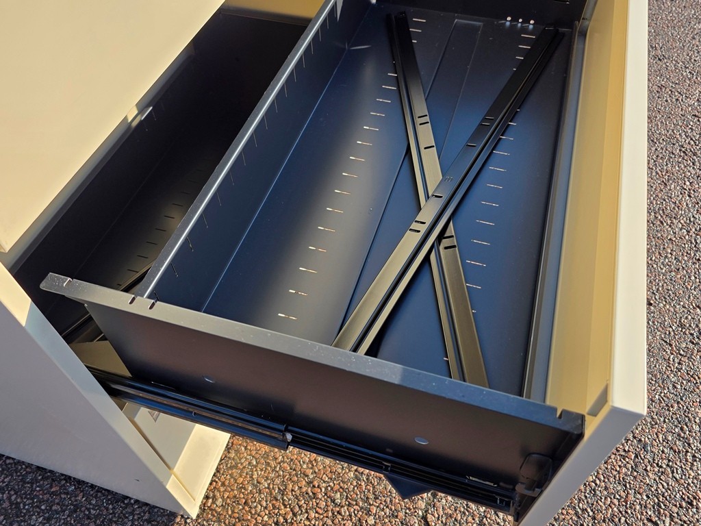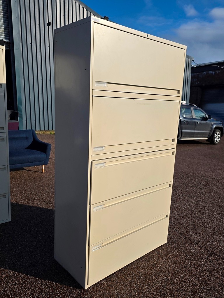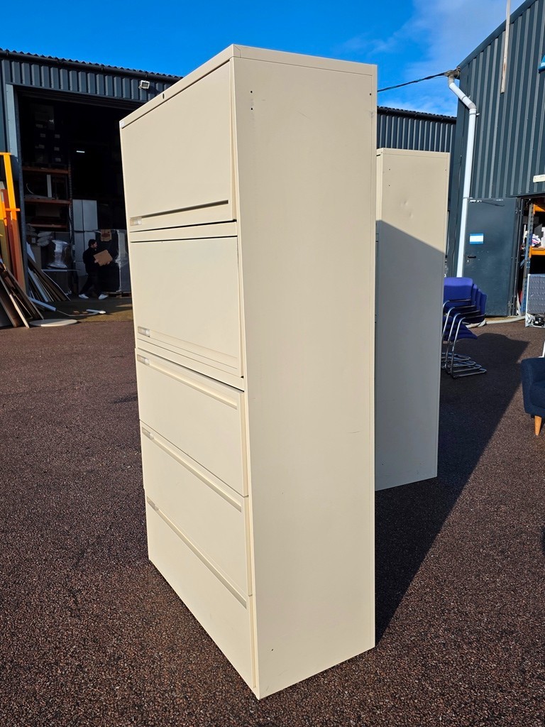 Heavy-duty commercial filing cabinet. Tall, high-capacity storage with 3 smooth-running drawers and A4/Foolscap suspension compatibility (rails included). Ideal for offices, archive rooms, and admin storage.