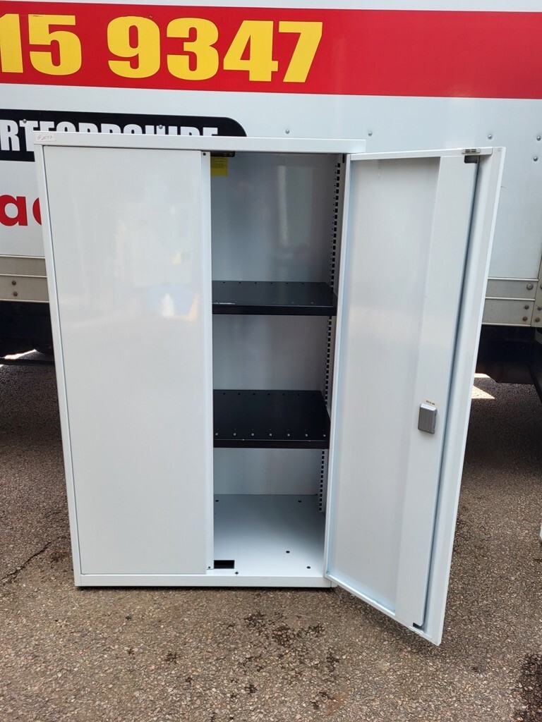 A smart and practical white office storage cupboard designed to provide secure, space-efficient storage for