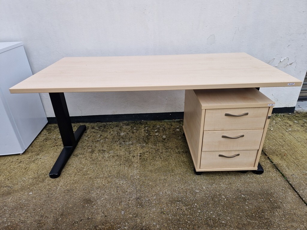 Upgrade your workspace with this Maple wood effect office desk, complete with a matching lockable mobile pedestal cabinet. With its generous 160cm width and professional finish, this workstation is ideal for offices, home workspaces, and study areas.