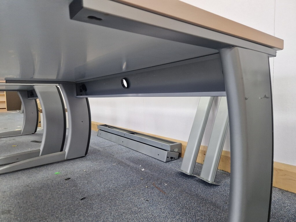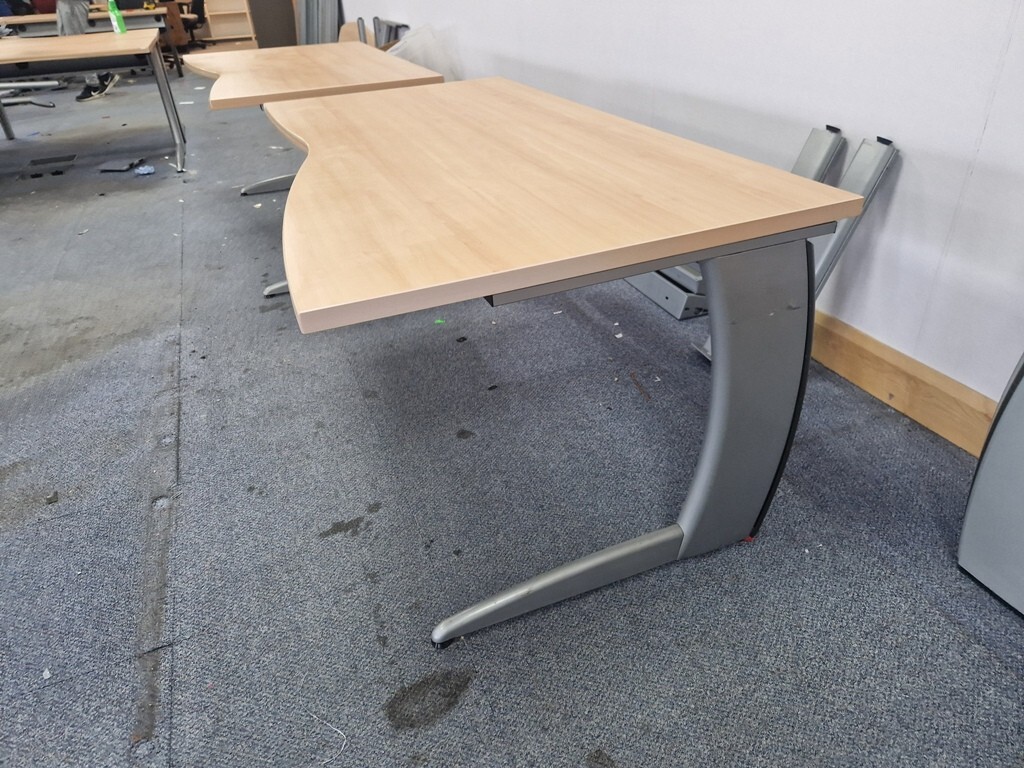 Upgrade your workspace with this stylish and functional Maple wood effect right‑hand wave office desk, complete with a matching mobile pedestal cabinet. Featuring an ergonomic wave design and robust construction, this desk is perfect for offices, home workspaces, or collaborative environments.