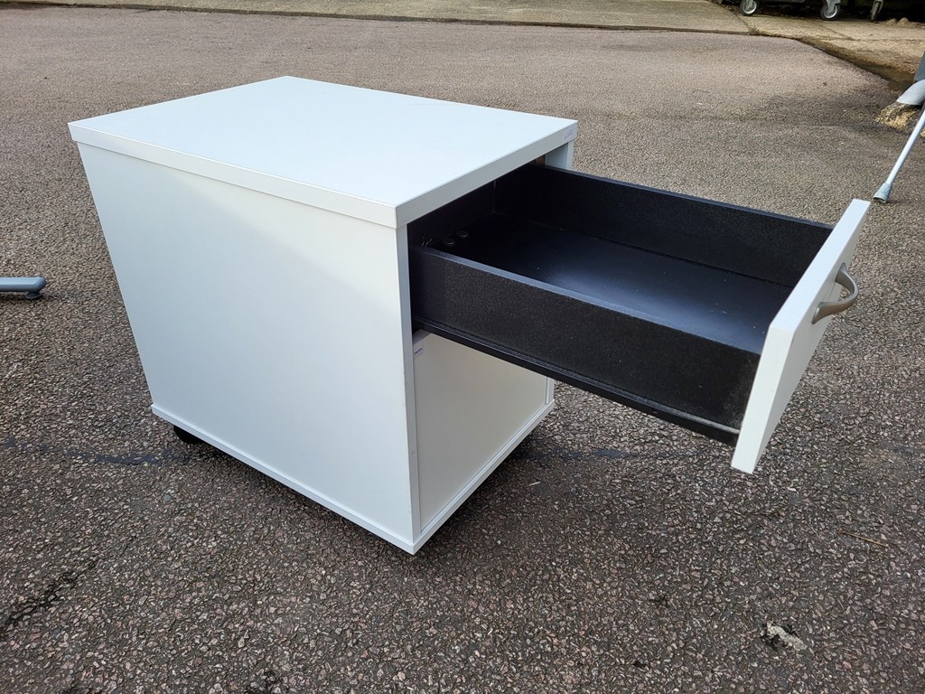 Mobile pedestal included — lockable, no keys supplied (spare keys typically obtainable using the lock code on the lock barrel, approx. £3 each)