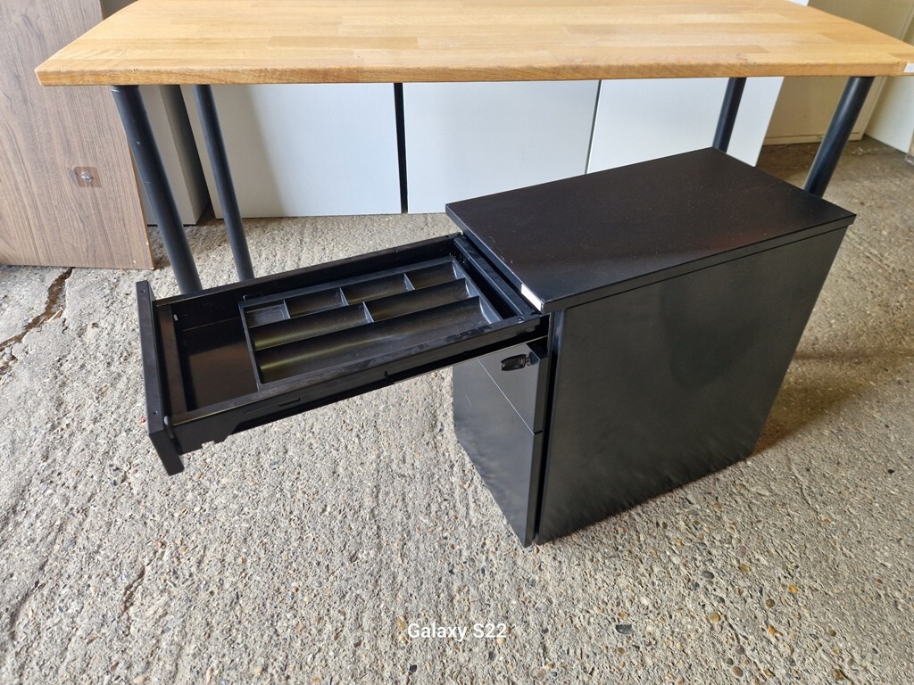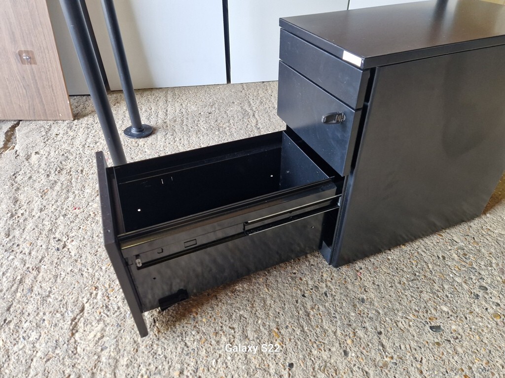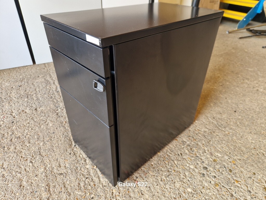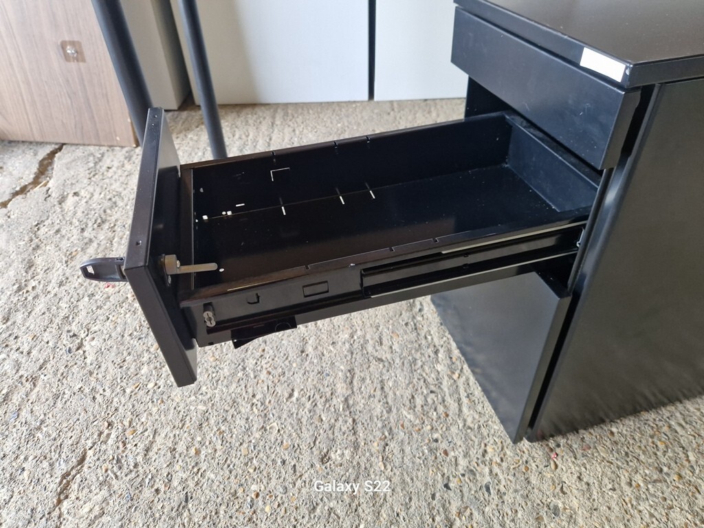 1 × Black slim mobile pedestal cabinet (lockable – 1 key supplied; additional keys available online at approx. £3 each from FastKeys)