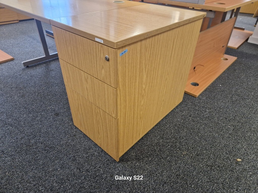 120cm Beech Wooden Office Desk + Extending Lockable Pedestal Cabinet | Cable Ports | Dismantled