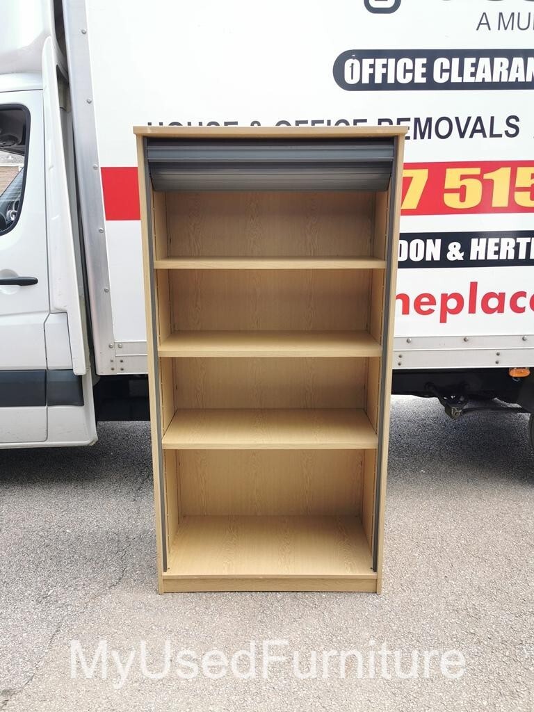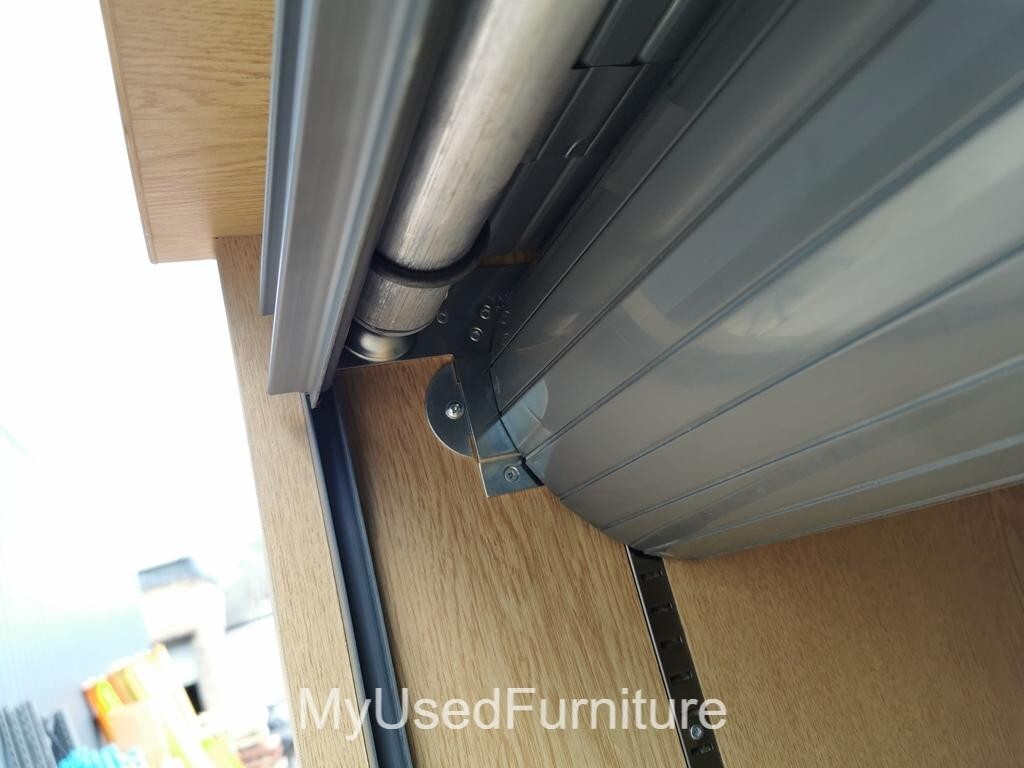 Elevate your storage with this durable shutter door storage cupboard featuring a sleek tambour-style roll-up door—ideal for both office and home use. Its elegant, space-saving design hides contents neatly without requiring clearance for swing-out doors, making it perfect for tight spaces.