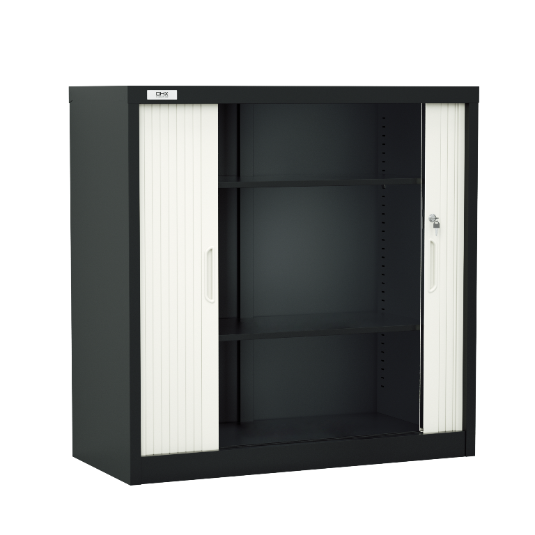 This OHX Sliding Double Door Tambour Storage Cupboard is a smart, secure way to keep your office or home workspace organised. The space-saving PVC tambour doors slide smoothly into the cabinet, making it ideal for tighter areas where swing doors get in the way. Finished in a clean design, it also features a lockable door and adjustable internal shelving – delivering tidy storage, and a modern look in one compact unit – all in one !