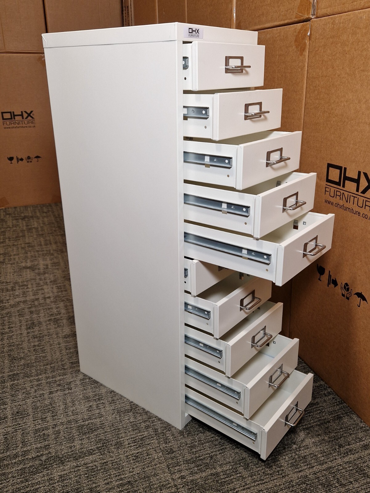 Compact, heavy-duty multi-drawer storage with OHX’s sliding rail system for smooth, stable drawers — ideal for offices, home workspaces, and organised storage for stationery and small items.