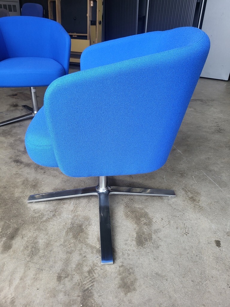 A stylish pair of Orangebox Hay swivel chairs — ideal as modern task or meeting chairs for collaborative workspaces, reception areas, or sleek home offices.
