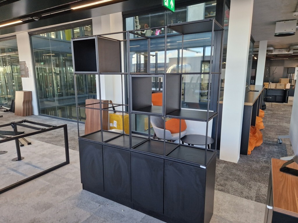 A versatile, design-led modular shelving divider that brings agile zoning and premium style to any workspace.