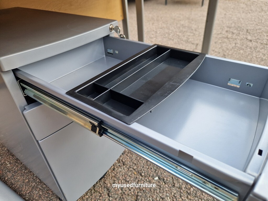 1 × Mobile pedestal cabinet with drawers (lockable – 2 keys supplied; replacement keys can be ordered online for approx. £3 each at FastKeys using the lock code)