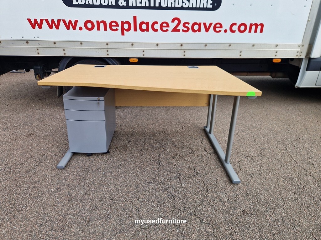 1 × Beech effect wooden right hand wave office desk