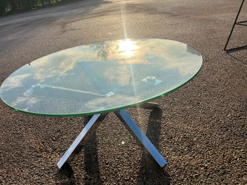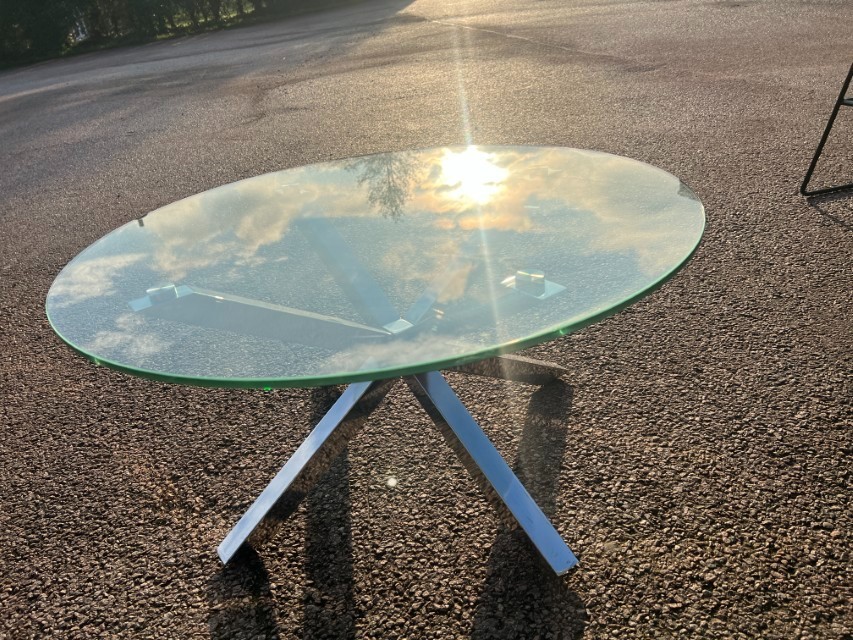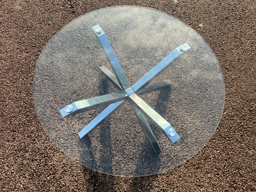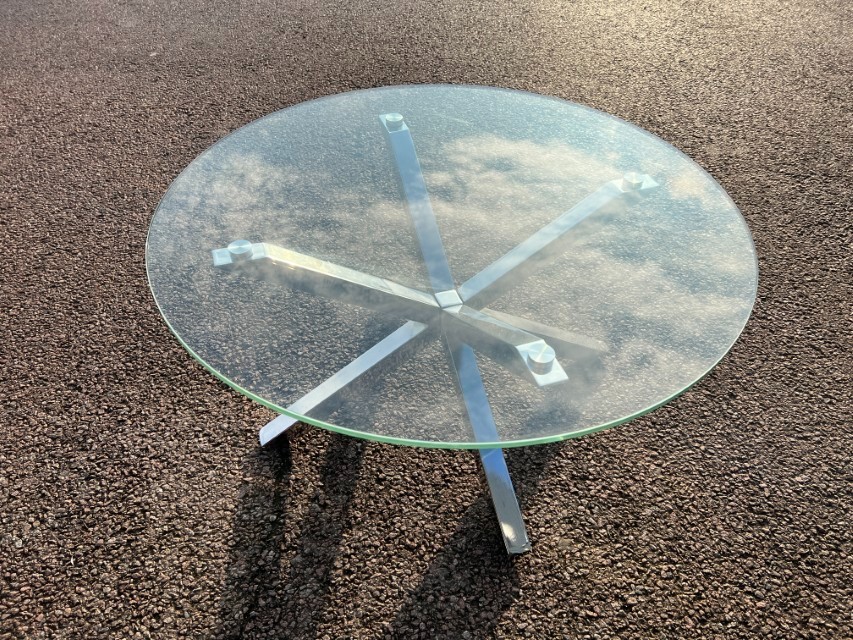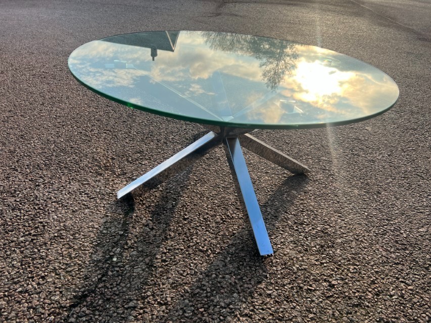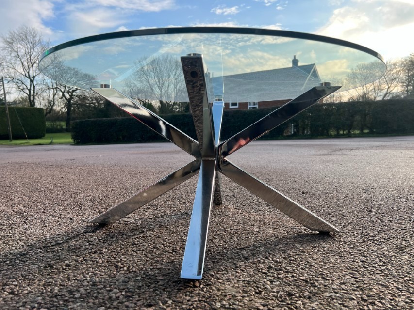 Round Tempered Glass Coffee Table (82cm) – Chrome Star Base ; O-3088
