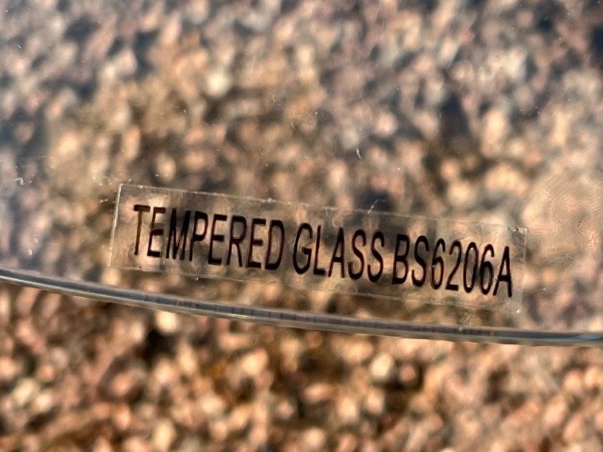 - Round tempered glass top (marked BS6206A)