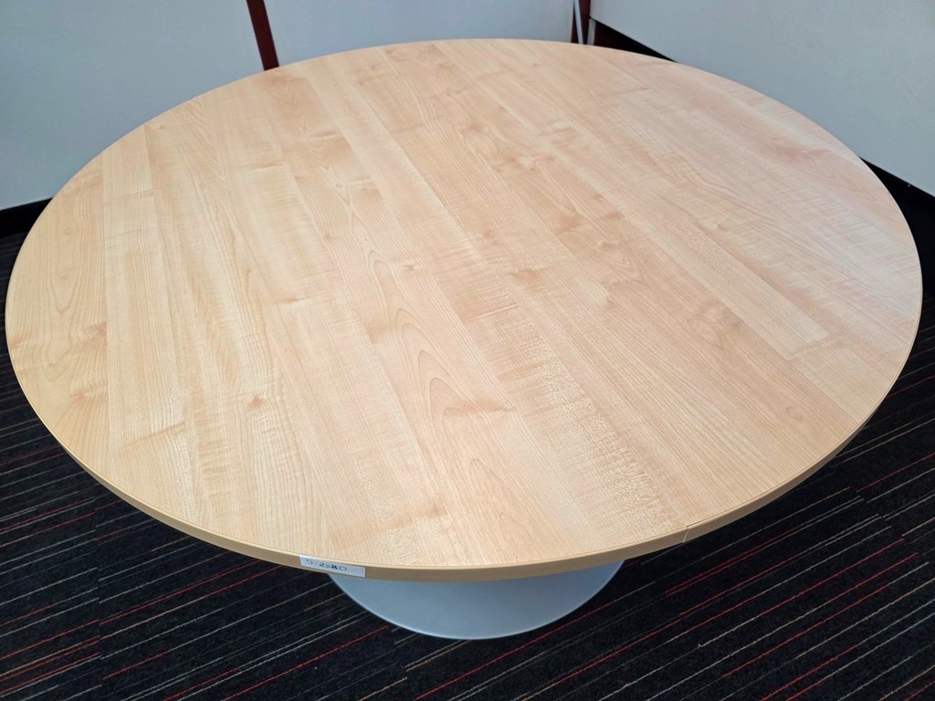 Smart, space-efficient round meeting table with a clean maple look and a sturdy pedestal base—ideal for offices, breakout areas or small conference rooms.
