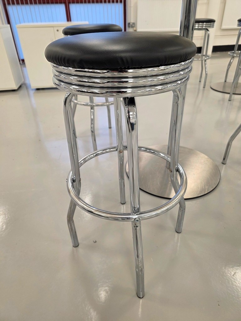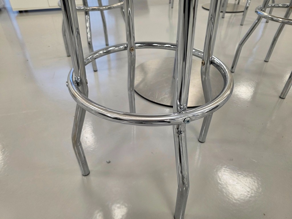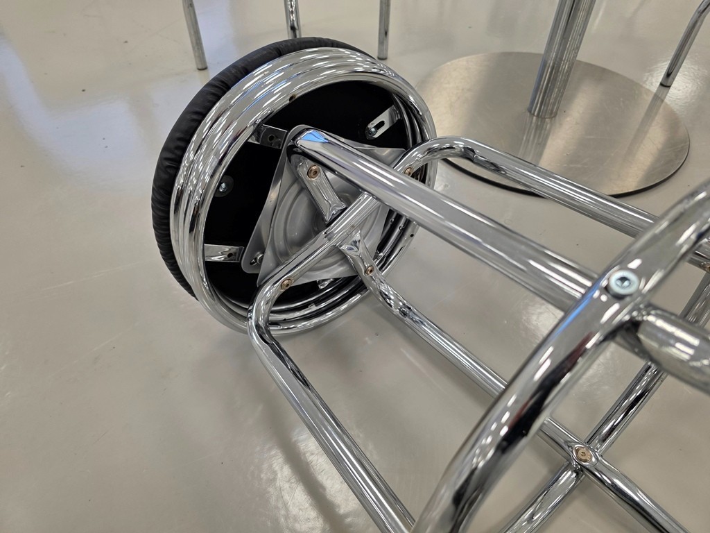 • Modern chrome-effect frame with black padded seats and white tabletop