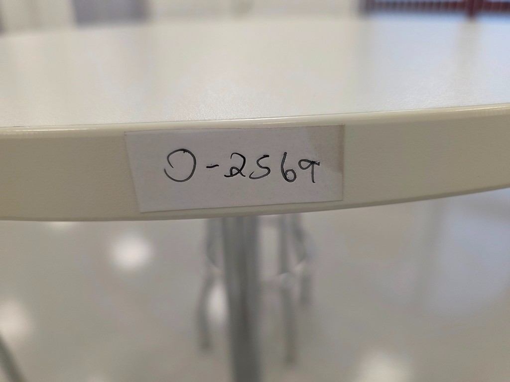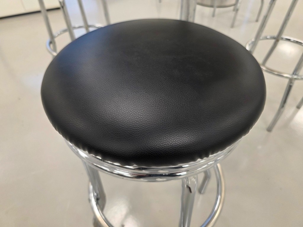 Circular White Top Meeting Table + Set of 3 Chrome Frame Black Seats Stools (SET)