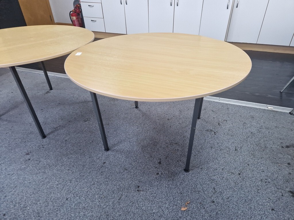 - Large 120cm circular beech tabletop — great for meetings and collaboration