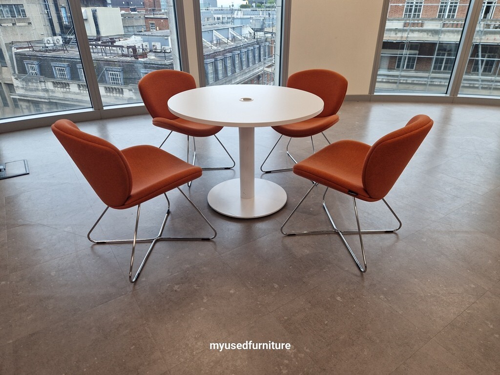 🪑 Senator White Round Meeting Table (100 cm) + 4 “Edge” Skid-Frame Chairs
