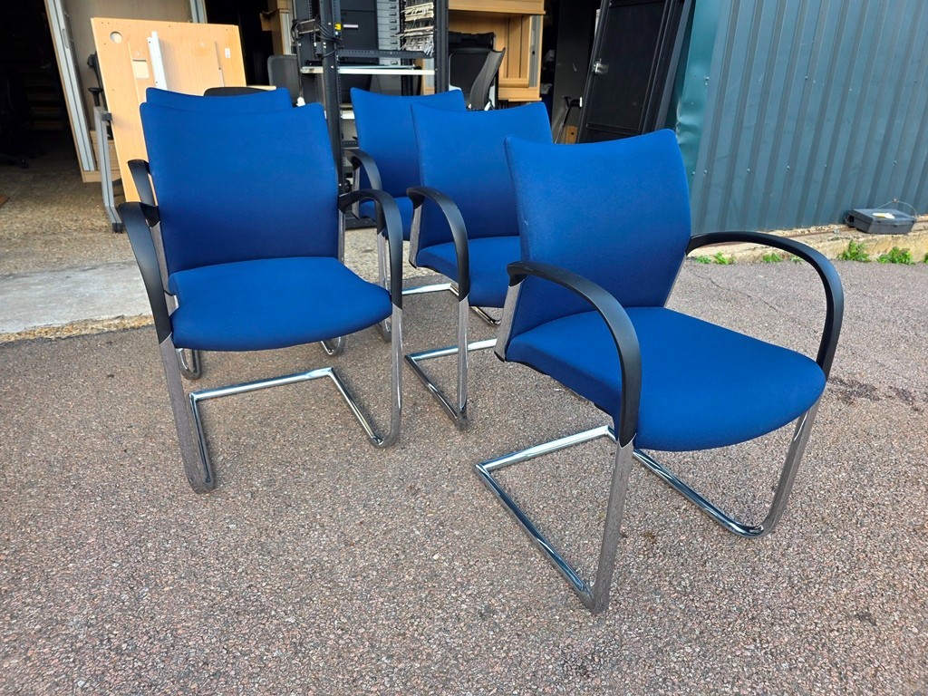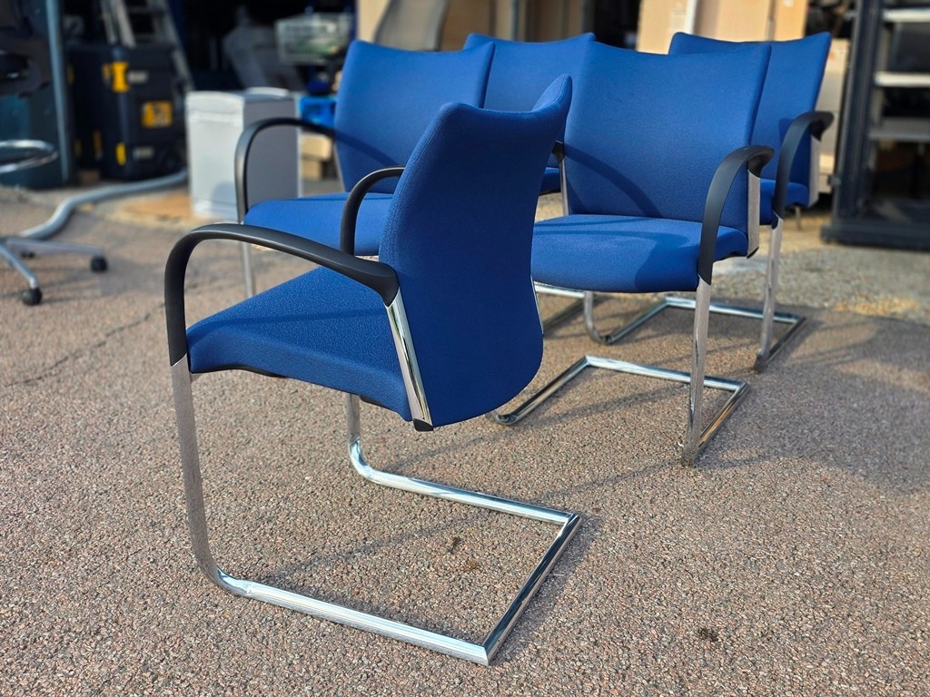 Smart, professional meeting / reception chairs with a comfortable upholstered seat and back, stackable for easy storage and a cantilever frame.