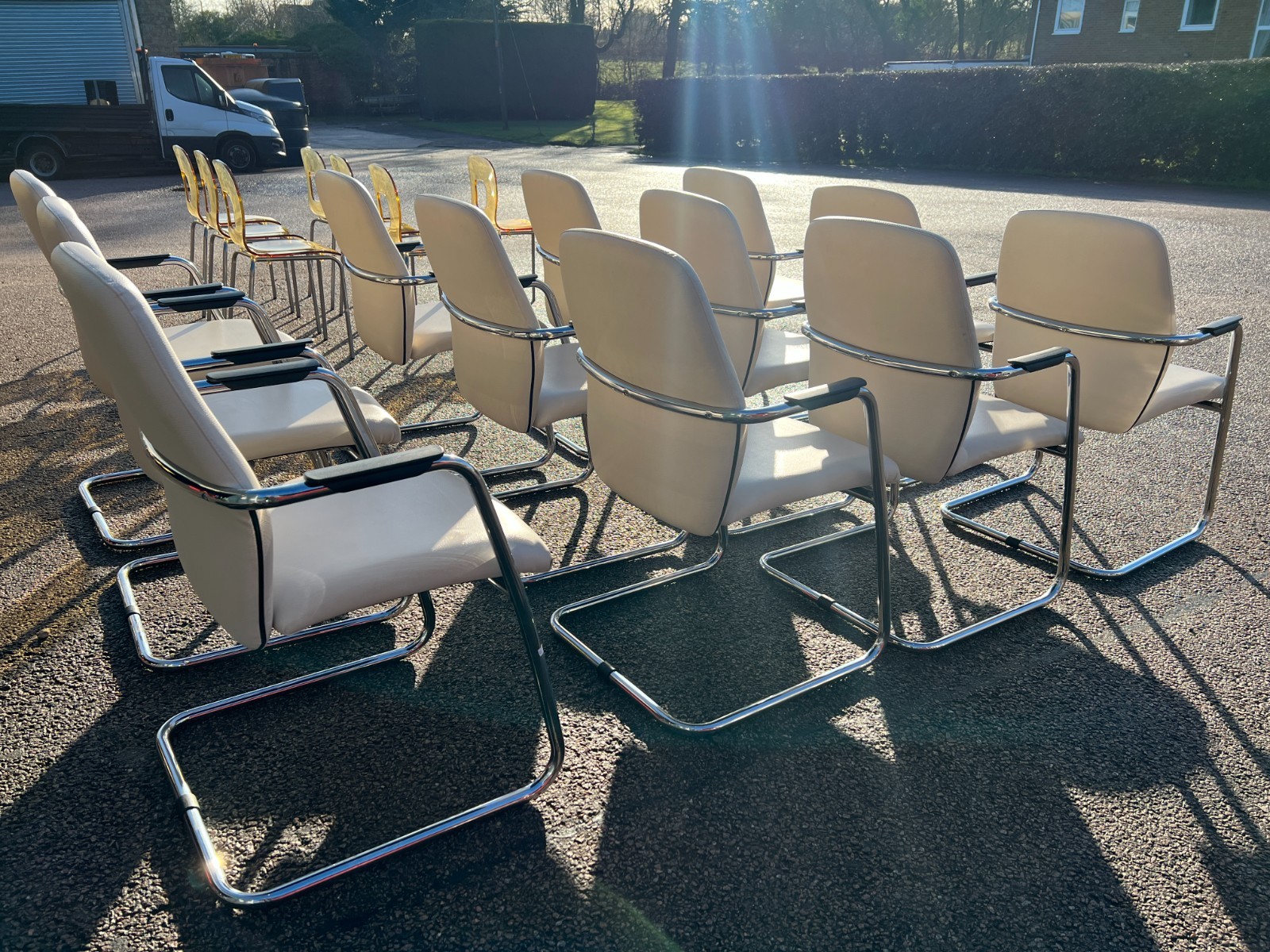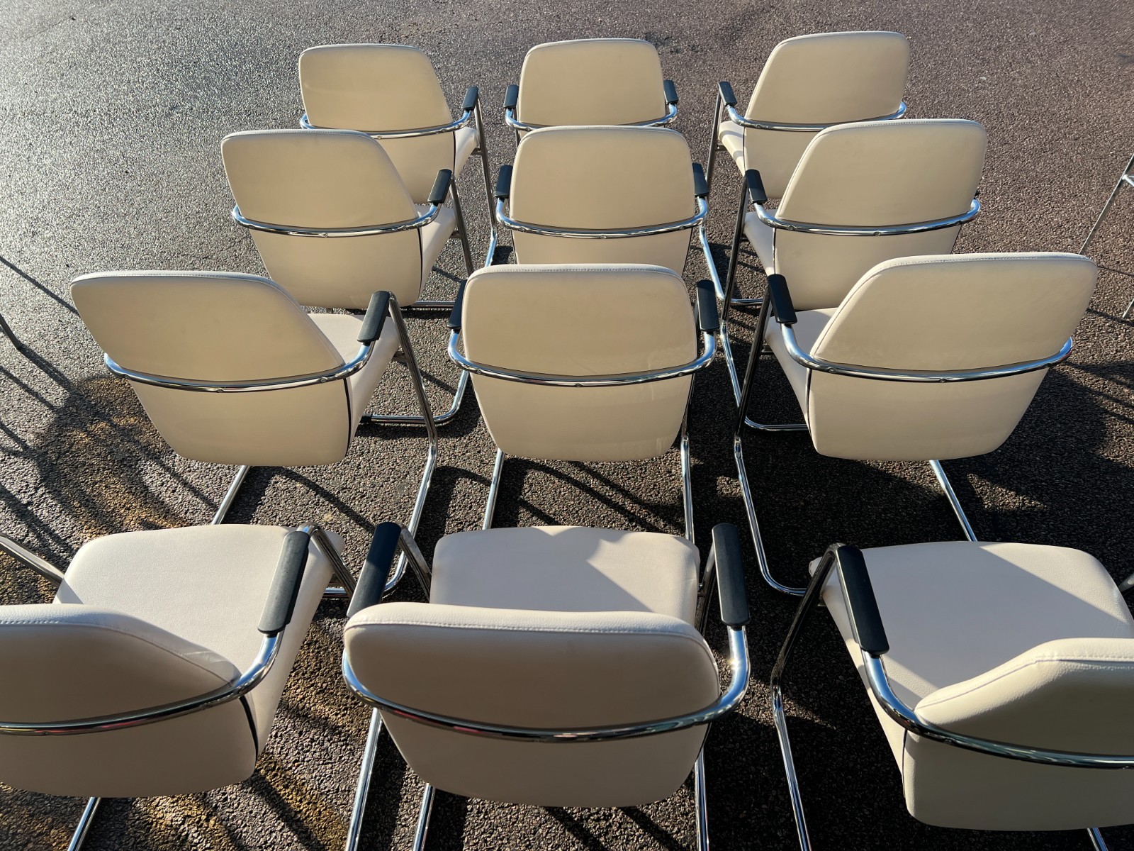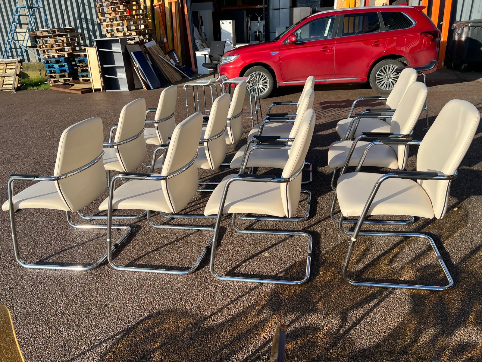 🪑 SitLand Cantilever Meeting Chairs – Set of 12 (Cream Upholstery, Chrome Base) ; O-3105