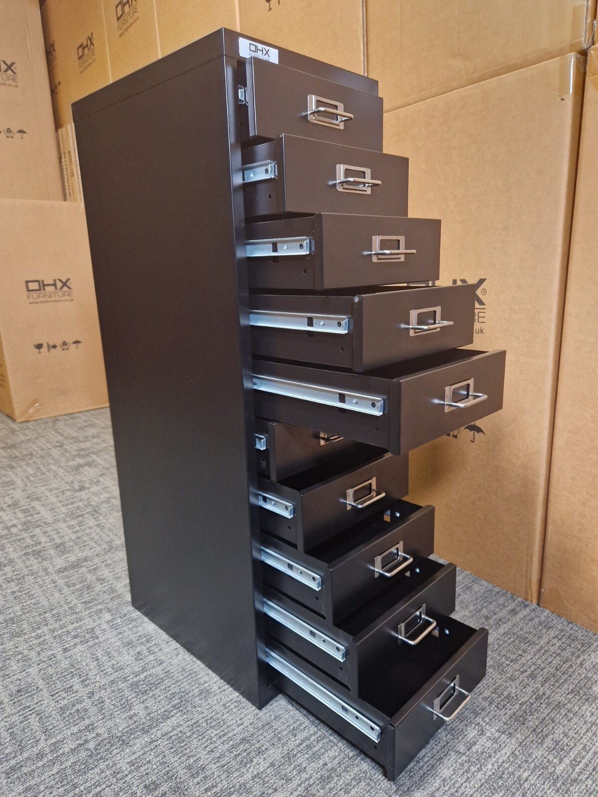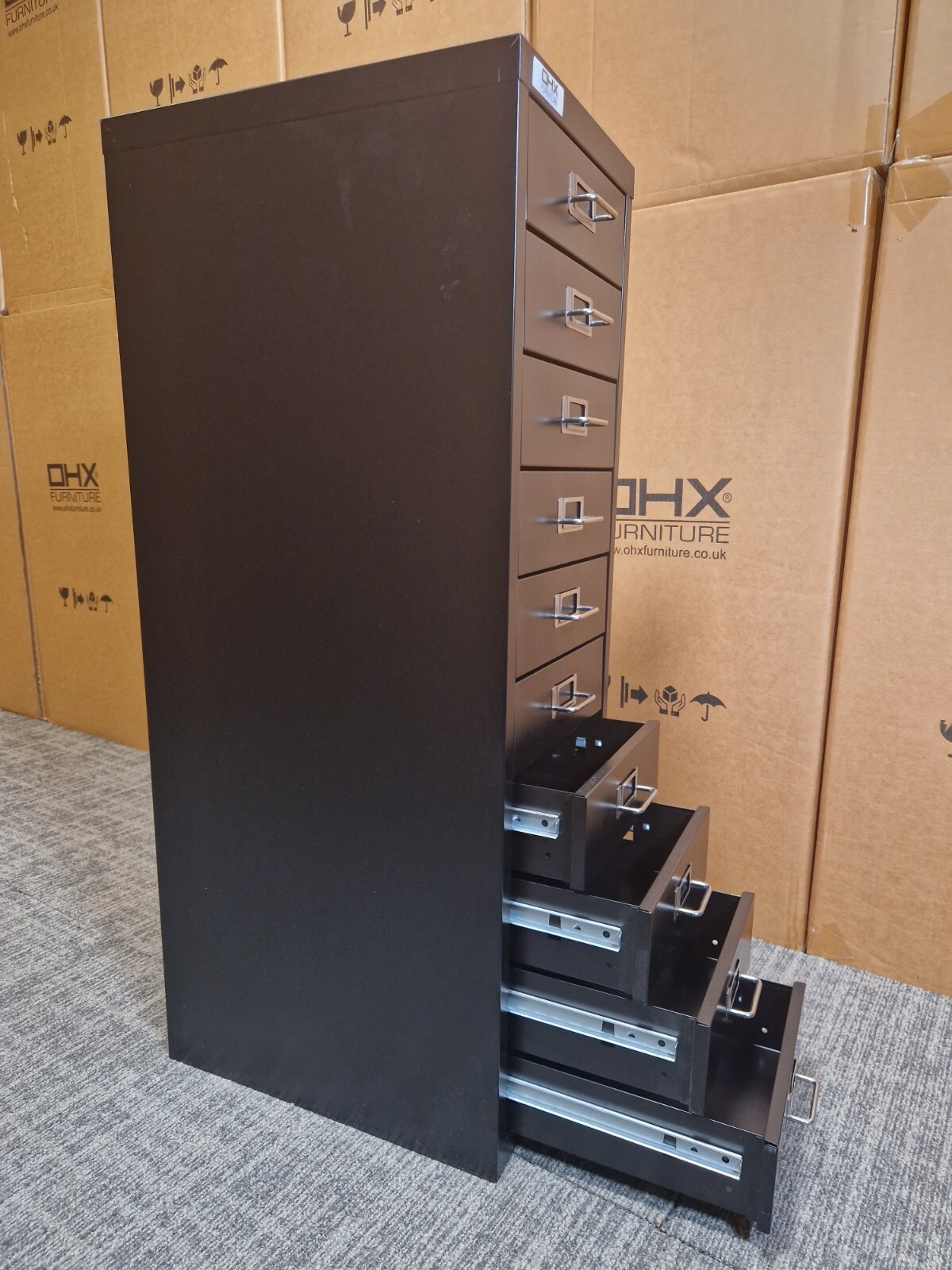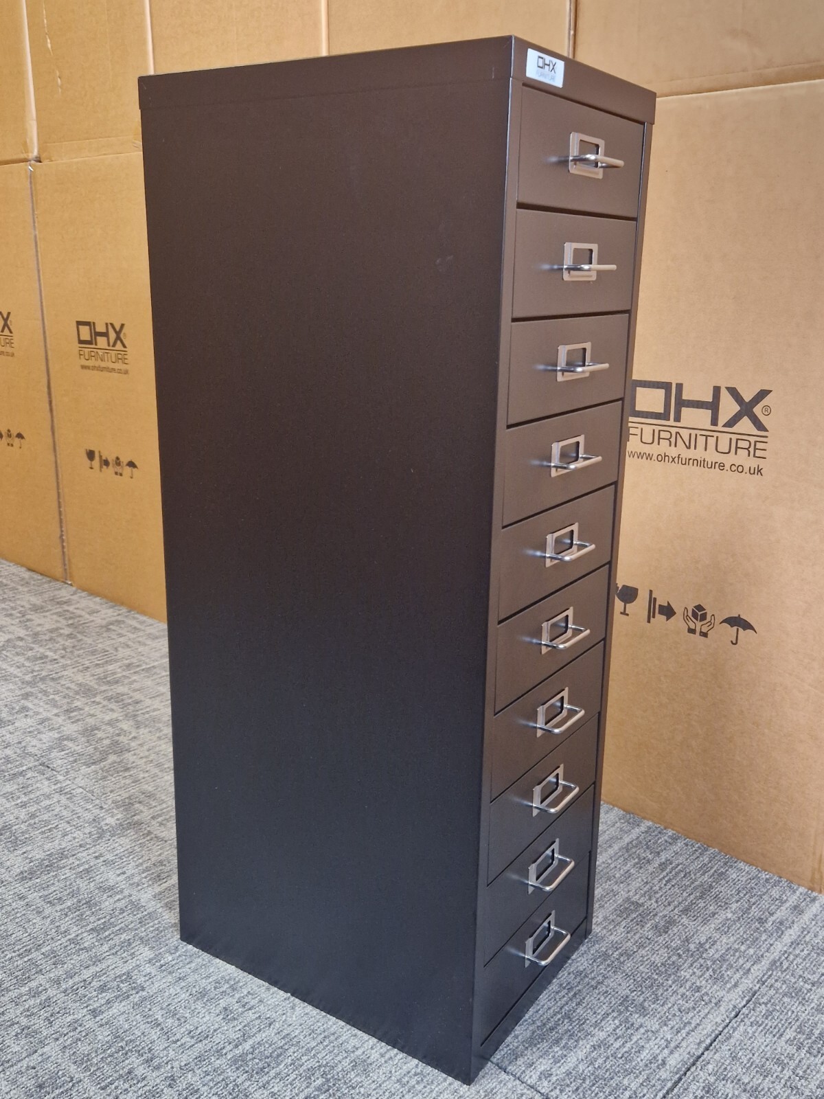 OHX 5 or 10 Drawer Heavy Duty Office Storage Cabinet – Black – Free 48hr UK Delivery
