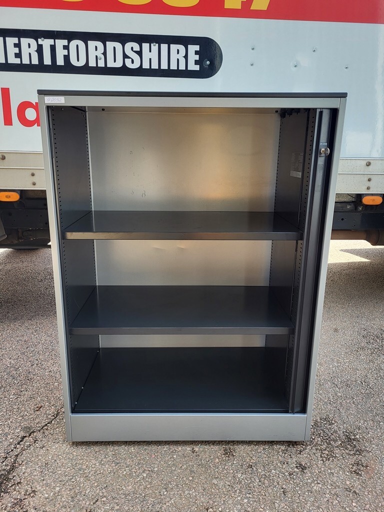 🗄️ Steel Sliding-Door Office Cupboard – Grey – 2 Adjustable Shelves (O-2051)