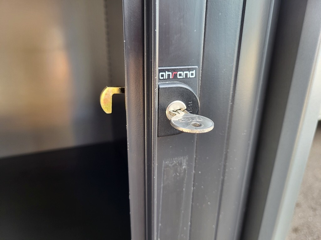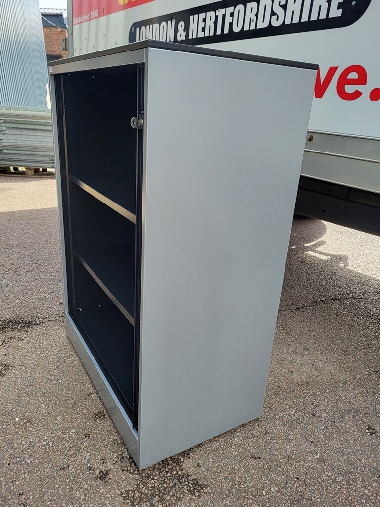 Streamline your workspace with this compact, lockable steel office cupboard — ideal for secure, efficient storage at desk-height.