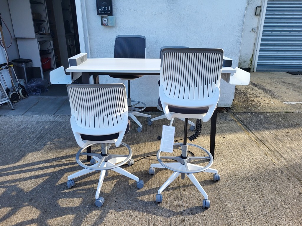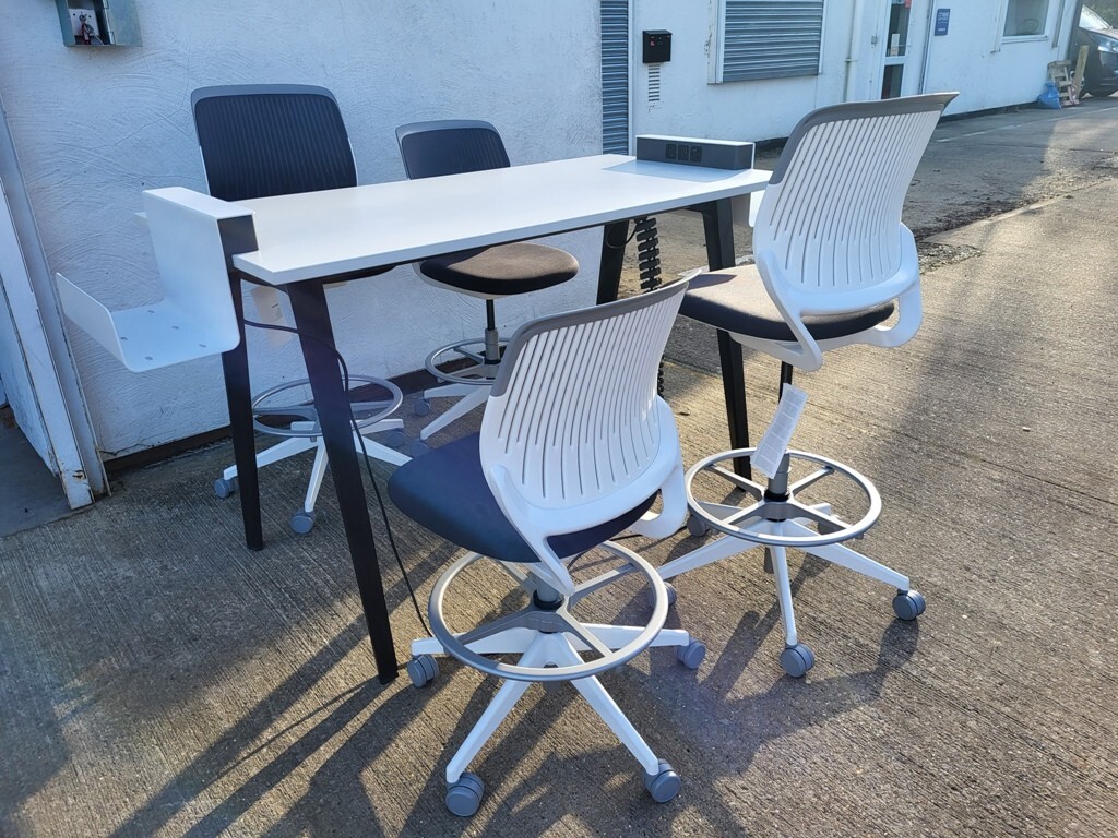 Upgrade your workspace with this premium Steelcase Be-Free collaboration set, complete with four Cobi high chairs. Designed for comfort, durability, and teamwork, it’s perfect for offices, meeting zones, or creative breakout areas.