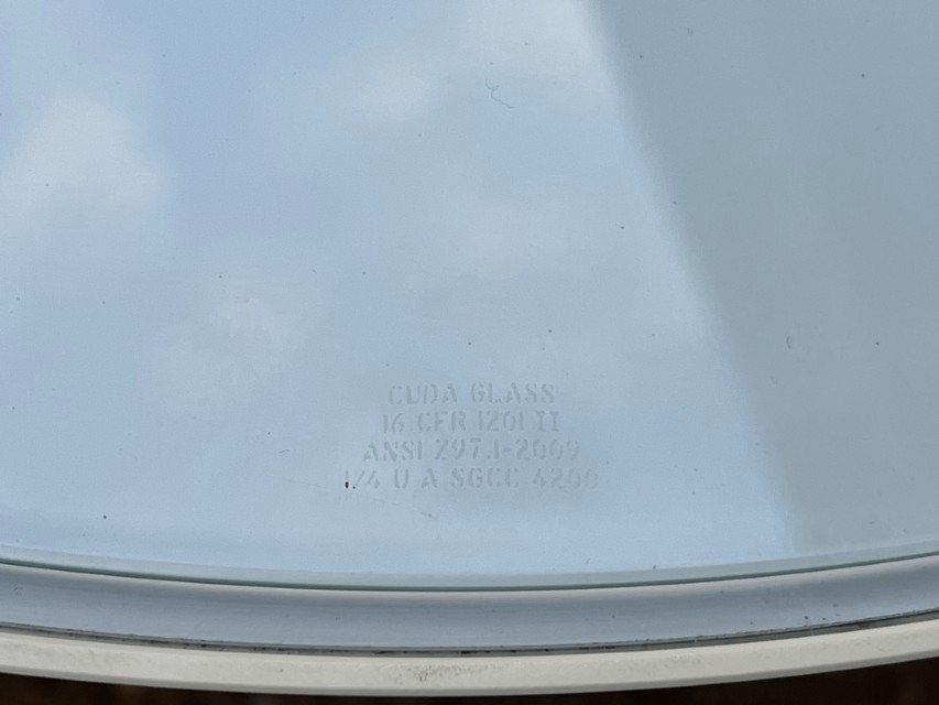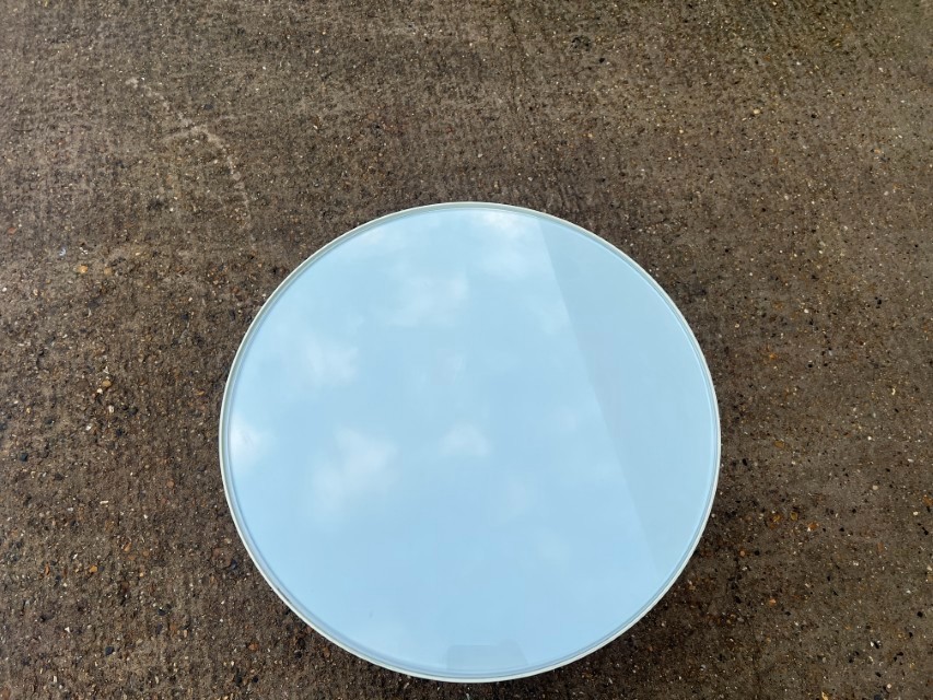 - Round glass top with clean, modern look