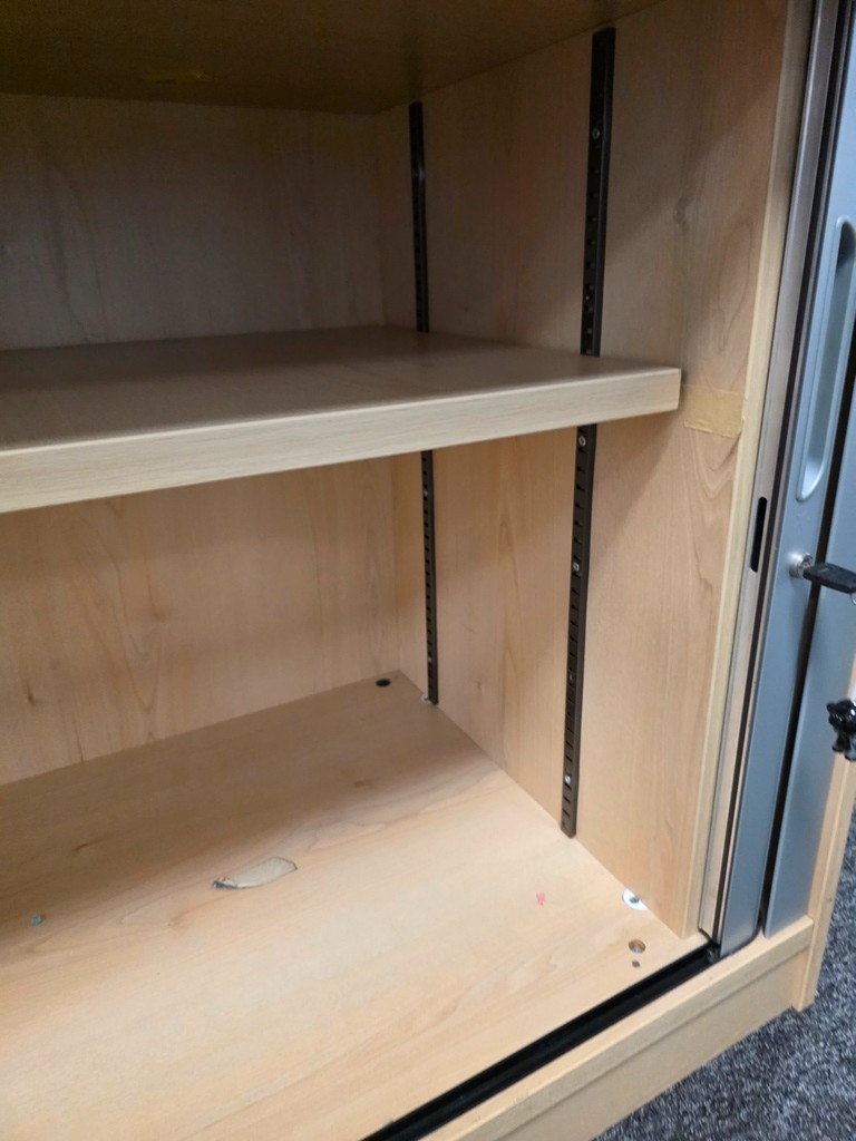 Sliding Door Office Storage Cupboard – Maple – Lockable – 730h×1200w×600d mm
