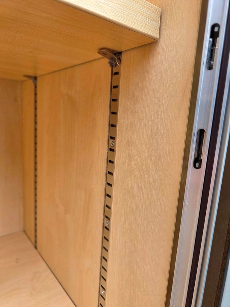 - Tambour / sliding door design – space-saving and practical