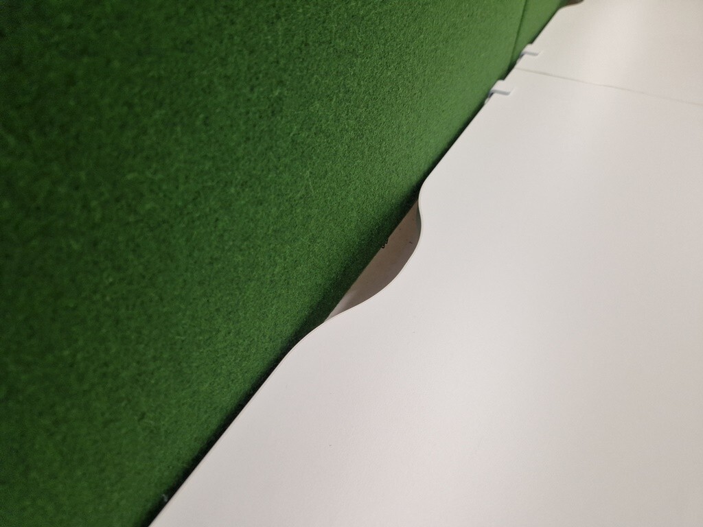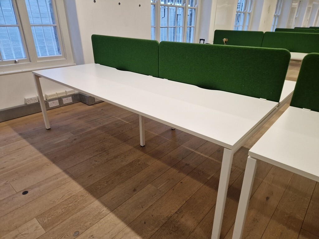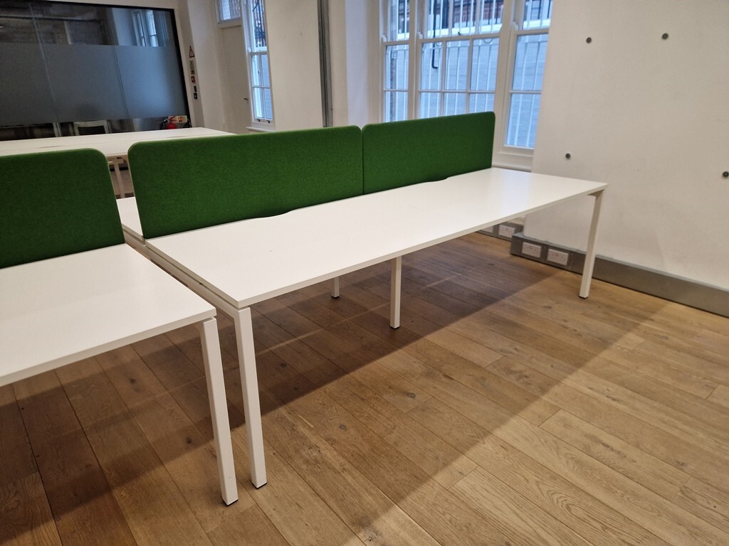 White 4‑Person Office Desk with Green Privacy Screens & Cable Management – 120cm Wide