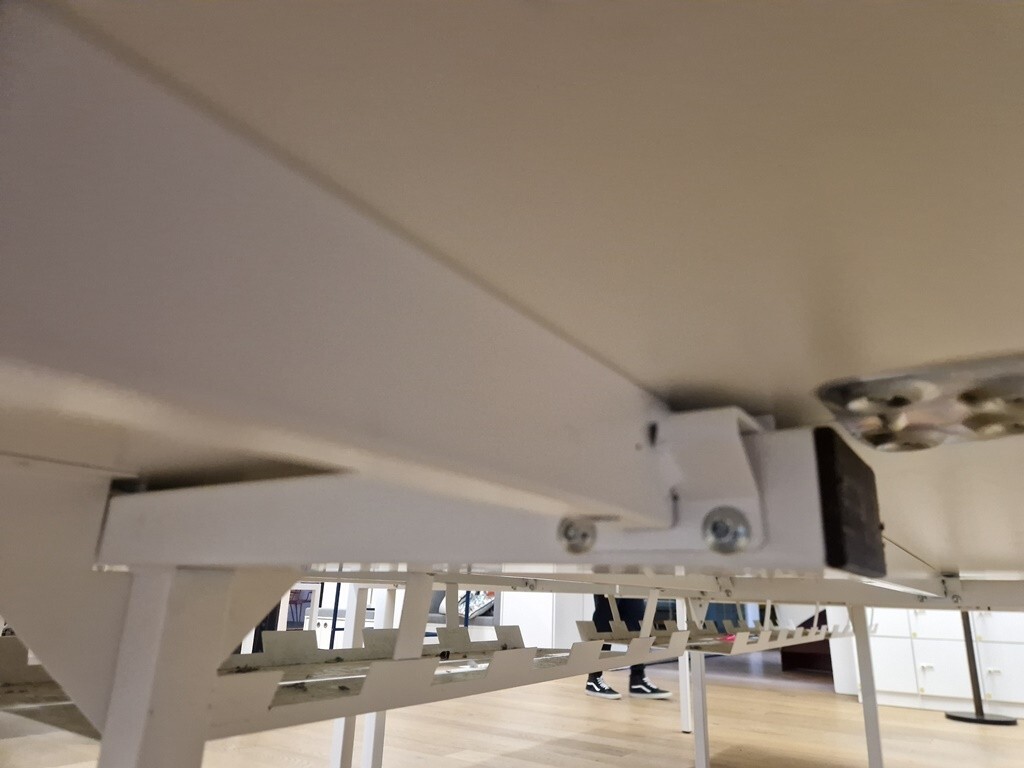 This white 4‑person office desk with privacy partition screens is perfect for collaborative environments, open‑plan offices, or co‑working spaces. With its modern design, robust steel frame, and excellent cable management, it offers both style and practicality.