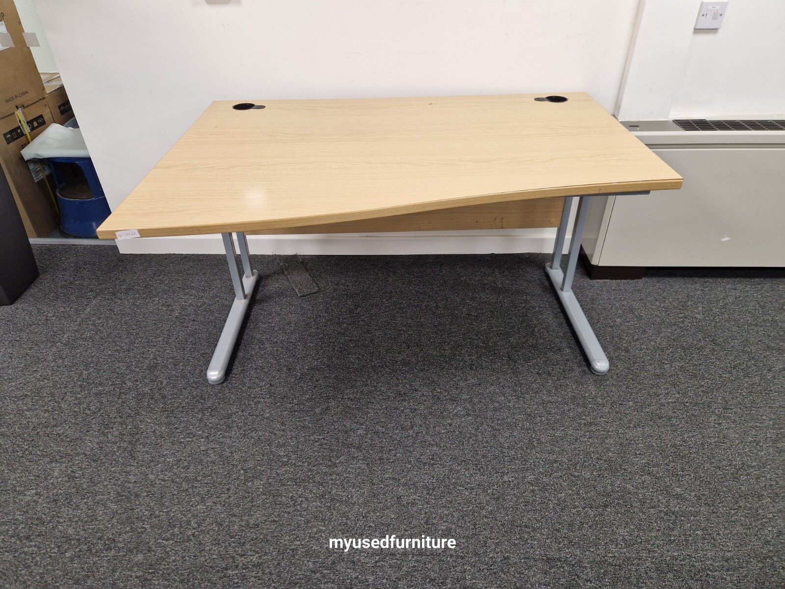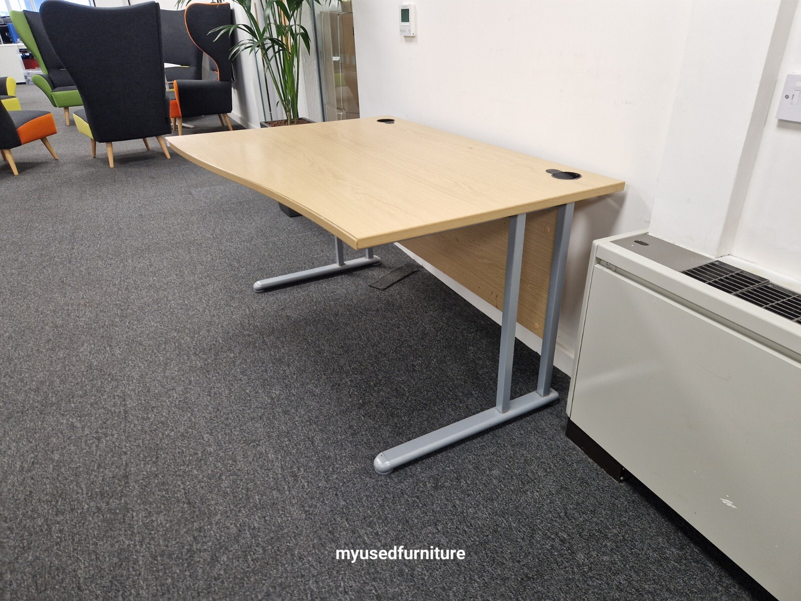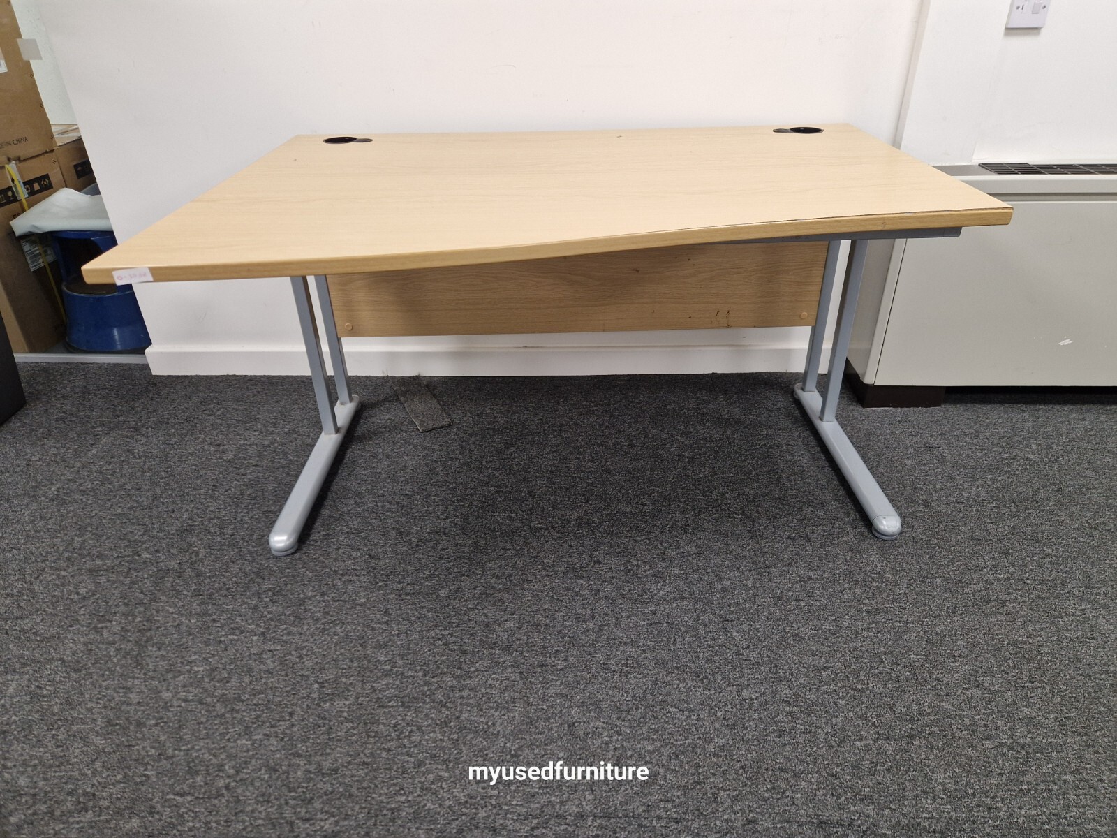 Beech Wood Effect Left‑Hand Wave Office Desk with Lockable Pedestal – 140cm Wide