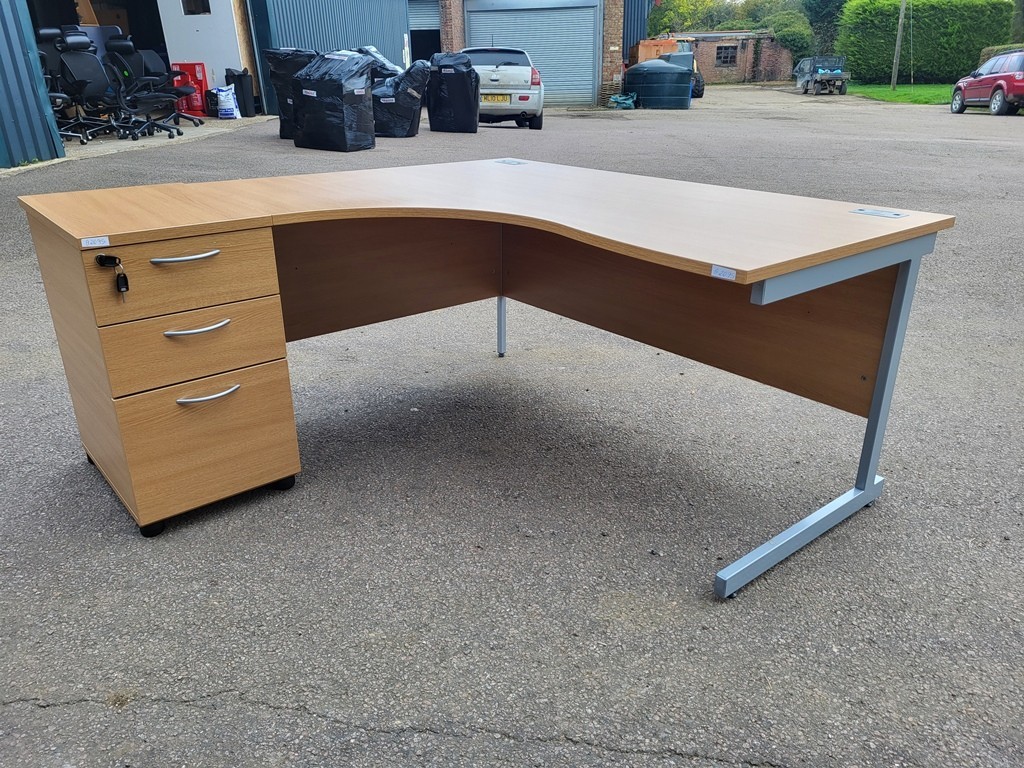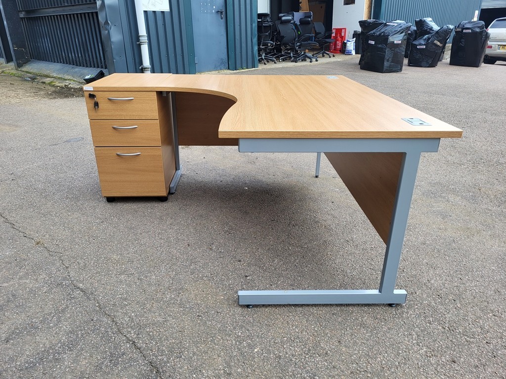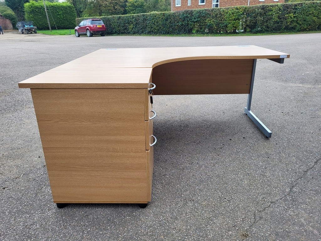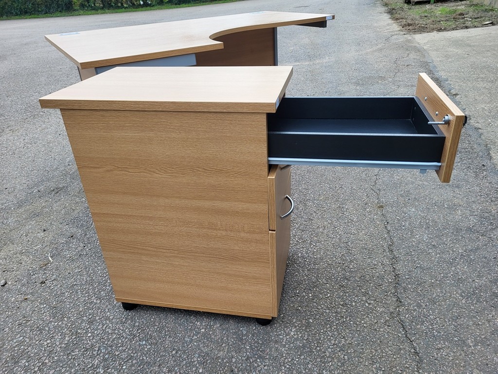 Beech Wood Effect Left Hand Wave Office Desk with Free Pedestal – 160cm