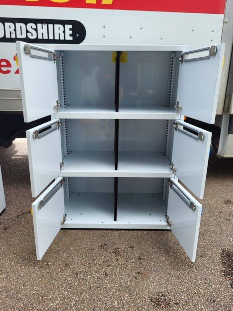 Lockable doors — supplied with 2 keys per door (spare keys typically obtainable using the lock code, approx. £3 each)