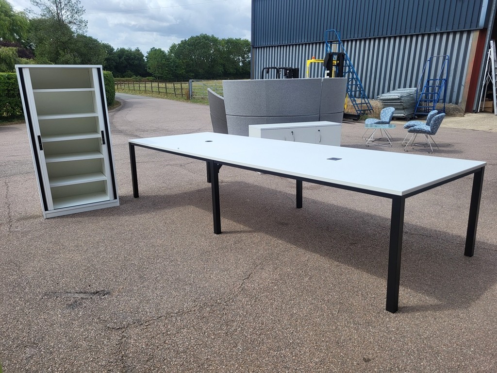 Conference Table Set – White & Black Scandinavian Design with Storage Cabinets
