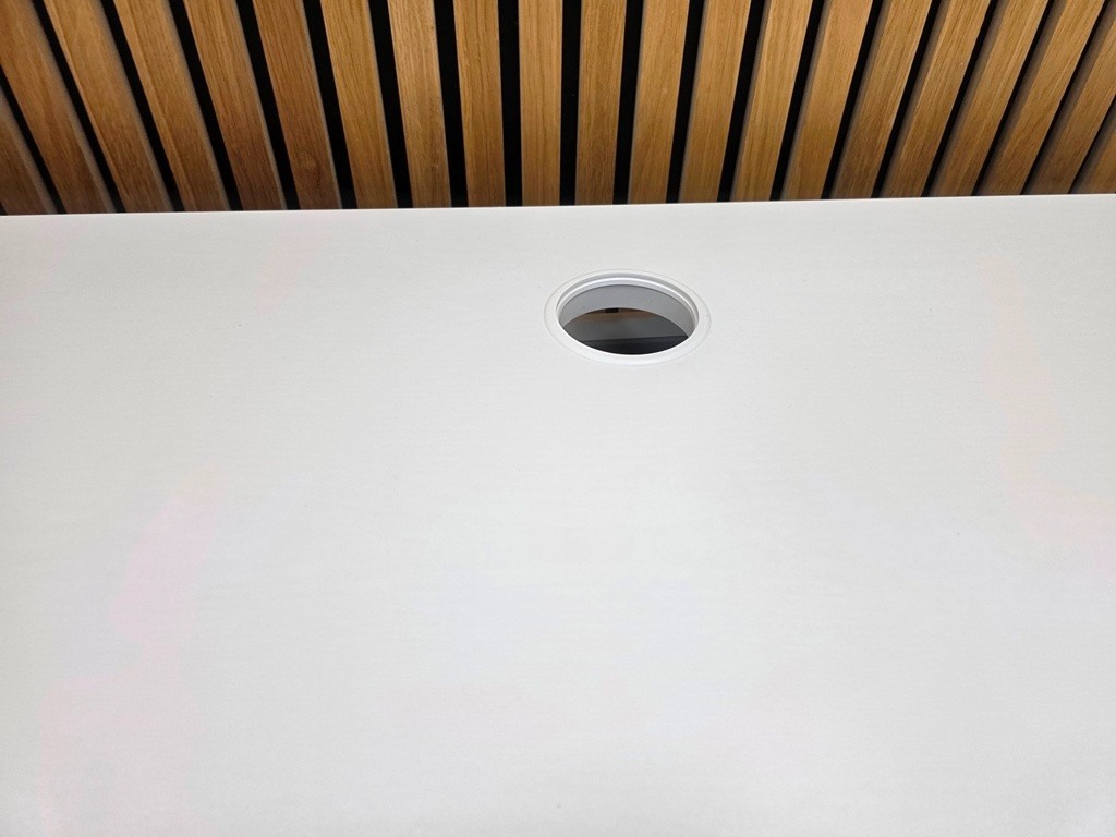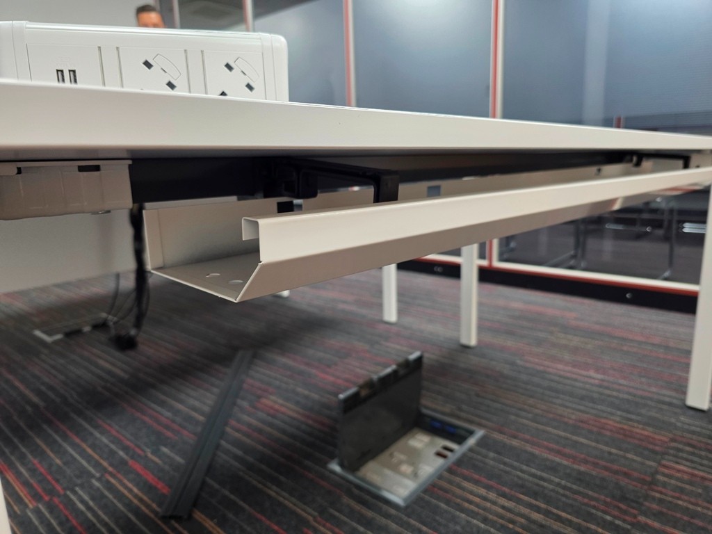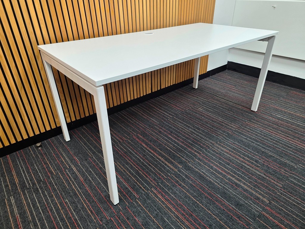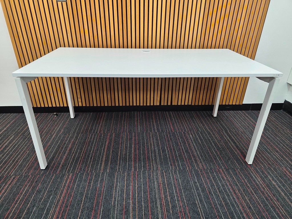 A clean, desk-height workstation with a generous 1600 x 800mm surface and integrated cable management – ideal for monitors, laptop setups and paperwork in office environments, meeting rooms and team workspaces.