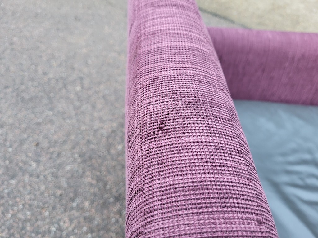 Minor fabric blemish on the top back of the backrest (highlighted in photos)