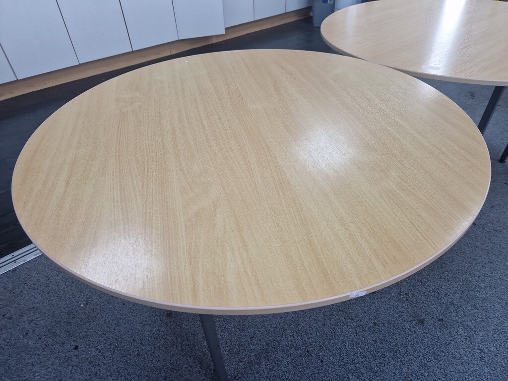 Large Circular Beech Meeting Table – Steel Frame with Levelling Feet